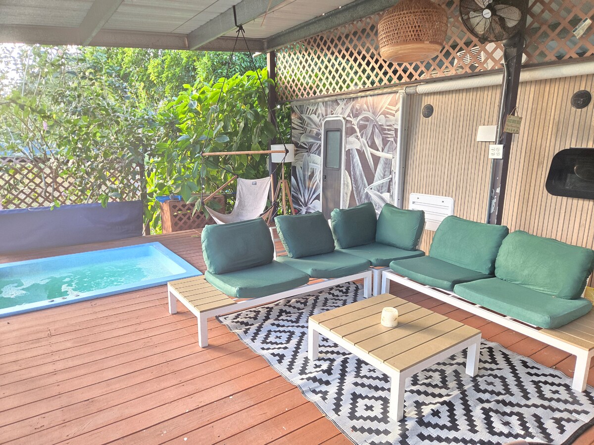 Pobjegnite u mir prirode na manje od 5 minuta od plaže Jobos. Renovirana i uređena kamp-prikolica na našoj farmi od 5 hektara. Svetao, udoban i veseo enterijer i velika terasa sa spoljnim životnim prostorom. Unutrašnja i spoljašnja kuhinja, privatni tuš na otvorenom. Mali bazen i terasa, ognjište sa tikijima i bujni nasadi. Farma se prostire na 5 hektara i ima veliko drveće, ognjište, ljuljašku i mnogo vanjskog prostora. Posjetite kolibrije, papagaje, iguane i konje.