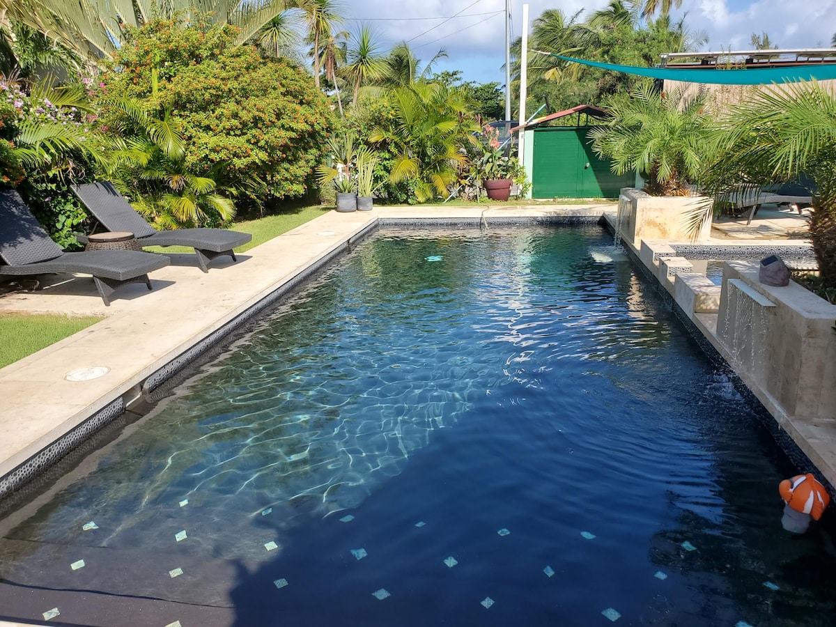 Tip smještaja:** Trouglasta brvnara - **Lokacija:** 6 minuta automobilom od plaže, restorana i supermarketa; 15 minuta od aerodroma Rafael Hernández. - **Sadržaji u sklopu objekta:** - Privatno - Bazen za dvoje (bez grijalice) - Roštilj (ugalj nije uključen) - Mali električni šporet - Frižider u stanu - Pribor za jelo, tiganj i lonac - Topla voda u tuš-kabini - Generator i cisterna - **Kuhinja:** Spoljašnjost - **Kupatilo:** Unutrašnjost brvnare - **Parking:** Unutar unutrašnjeg dvorišta