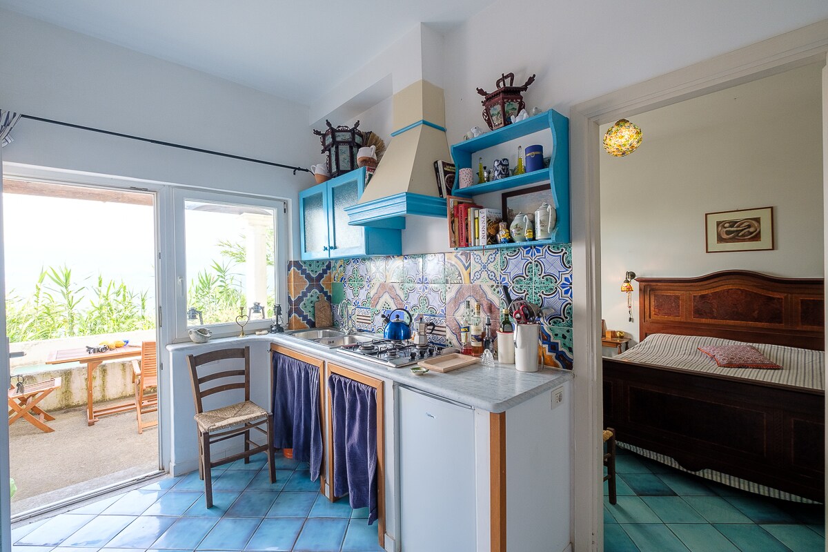 Divan stan u srcu Sant'Anđela, sugestivnog ribarskog zaseoka na ostrvu Išija. Pored plaže i malog poznatog trga, stan se nalazi na prvom spratu naše kuće i sastoji se od spavaćeg prostora sa bračnim krevetom, čajne kuhinje, kupatila sa tušem i balkona sa neverovatnim pogledom na more; tu su TV sat, klima uređaj i Wi-Fi. U blizini stana se nalaze restorani, bar, butici, taksi i autobuska stanica, rent a car/skuter, naplatna rampa.