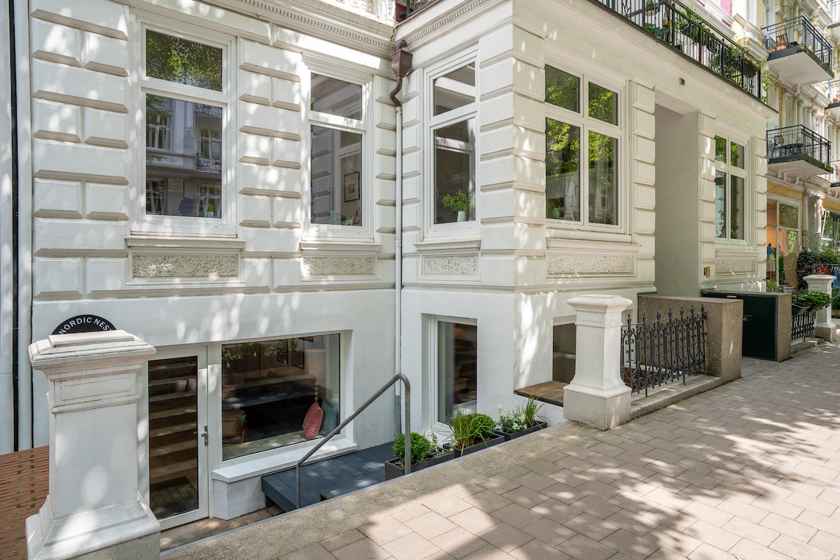 Predivan stan u mirnom dvorištu na granici Schanzenviertela. Boravite u vili trgovca, izgrađenoj 1885. godine i renovirana 2020. godine, u rezidencijalnoj ulici. Stari šarm sa modernim hotelskim sadržajima, poboljšanom zvučnom izolacijom i dobro opremljenom kuhinjom. Na pješačkoj udaljenosti nalaze se brojni barovi i restorani u popularnom okrugu Sternschanze. Okrug pogodan za djecu sa mnogo igrališta.