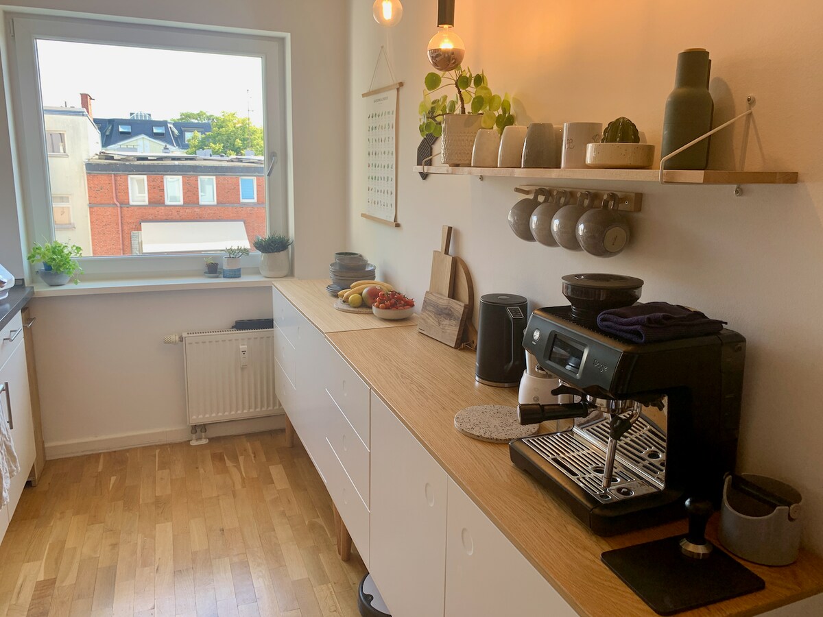 Osećajte se kao kod kuće dok ste na putovanju. Renovirani svetli dvosobni stan nalazi se u srcu Hamburga i prostire se na 95 m2 u reprezentativnoj staroj zgradi iz 1896. godine, u jednom od najboljih stambenih područja Hamburga. Stan je veoma centralan i tih i pogodan je za do 4 osobe. Do Alstera možete stići peške za nekoliko minuta, sa brojnim parkovima duž obale. Takođe možete da stignete do centra grada, izložbenih dvorana i kongresnog centra za nekoliko minuta. U okolini možete da uživate u neposrednoj blizini, brojnim kafićima, restoranima, kao i u supermarketima i pekarnicama. Svakog utorka i petka, čuveni Isemarkt se održava u Harvestehudeu, gde možete da doručkujete, pecate ili da vas zavedu regionalne delicije.