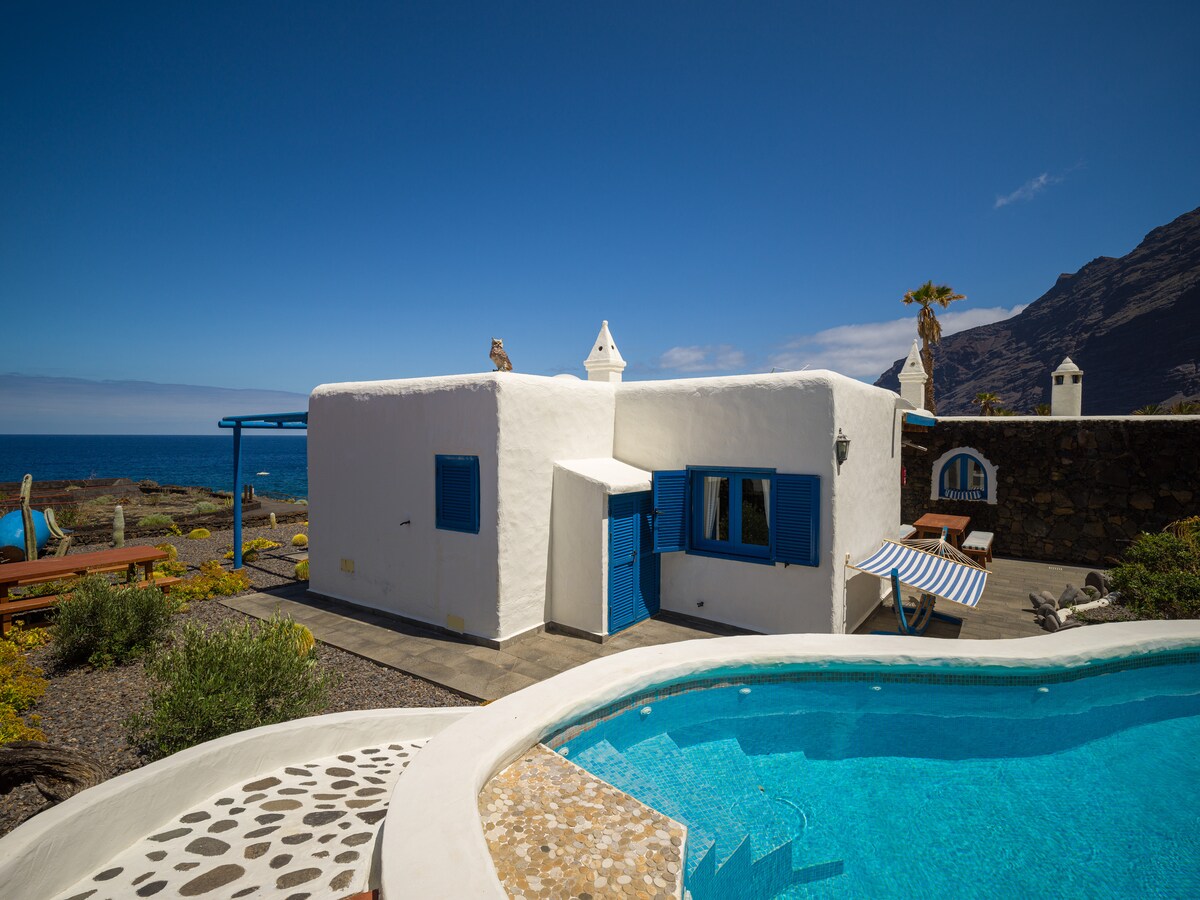 50 metara od mora, na prvoj liniji, sa pogledom na celo more Frontera, od Arenas Blankas ili Los Roques de El Salmor. Dizajnirao César Manrique. Nasuprot su bazeni Kaskadas del Mar, kao i prirodno morsko jezero koje se naziva El Río. Površina od 800 m2. Veliki dnevni boravak, TV, kamin, bašte. Pileći roštilj, roštilj – roštilj, roštilj. Peć na drva Bazen sa solarijumom i ležaljkama za sunčanje, kao i visećim ležaljkama i spektakularnim pogledom. Potpuno renoviran i renoviran 2018. godine