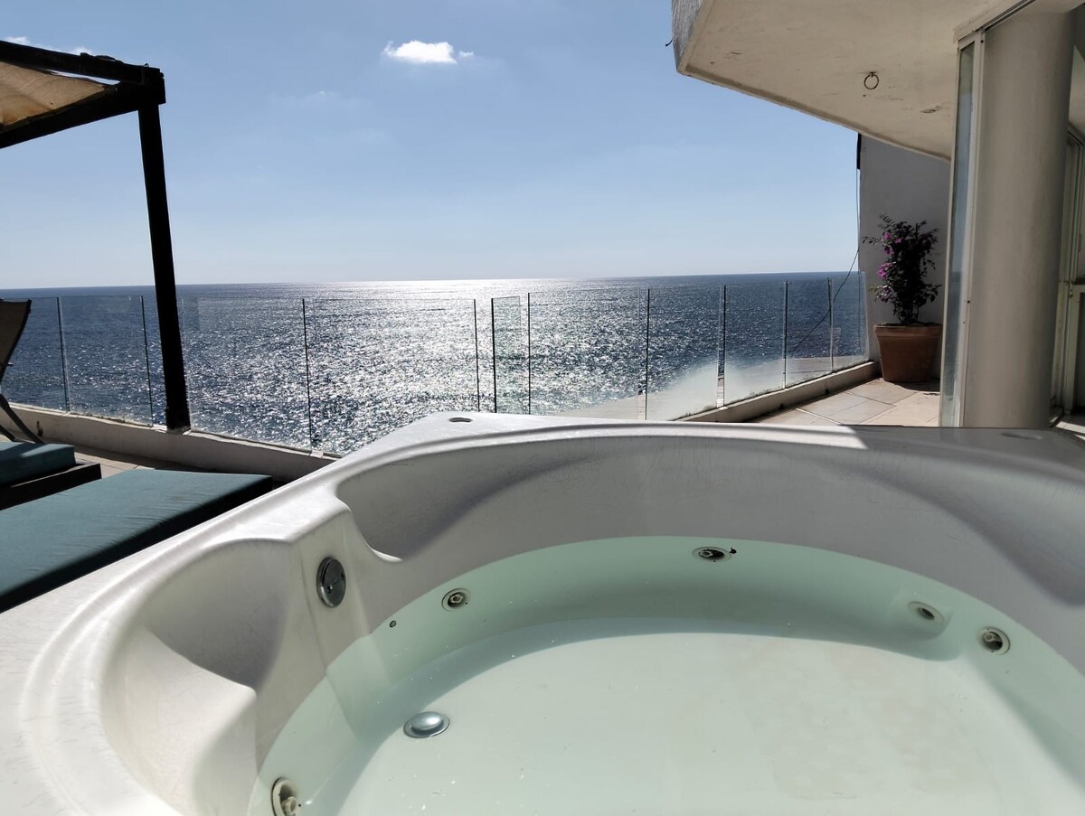 Pent House pet Friendly unique in Acapulco with a 360 degrees view. Panoramski bazen koji vam omogućava da uživate u predstavi ronilaca u Kebradi. Potpuno otvoreni dnevni boravak i trpezarija sa prostranom terasom. Opremljena kuhinja i tri udobne spavaće sobe svaka sa svojim kupatilom. PH dekor je u mediterrane stilu. Prostor uživa u prirodnoj ventilaciji morskog povjetarca koji pruža dobar osjećaj postojanja.
