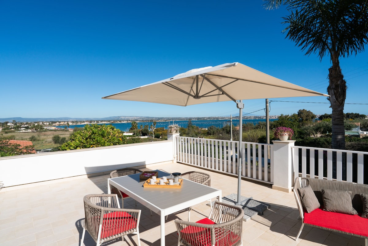 U srcu zaštićenog morskog područja Plemirio, ova samostalna vila površine 90 kvadratnih metara (969 kvadratnih stopa) ima grijani beskonačni bazen površine 80 kvadratnih metara (861 kvadratnih stopa) i pruža očaravajući panoramski pogled na sicilijansku obalu od Plemirija do rta Pasero. Vila je okružena privatnim parkom površine 8.000 kvadratnih metara u kojem se nalazi mnoštvo tipične sicilijanske vegetacije (masline, rogači, bademi i smokve; mediteranski borovi; dudovi; i kamena bašta sa mediteranskim grmljem).