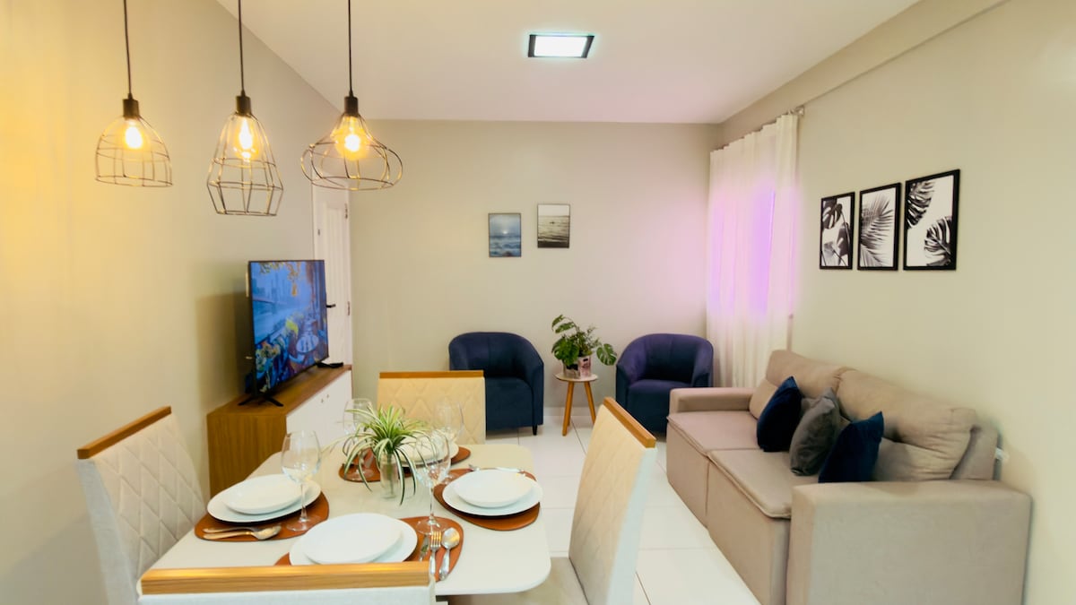 Utočište udobnosti i kulture u srcu Belema Potpuno klimatizovana, šarmantna i sa originalnim dekorom inspirisanim Amazonijom, Casa Felicidade je idealno mjesto za one koji traže mir, stil i autentično lokalno iskustvo. 🏡 Kuća: • 2 udobne spavaće sobe: dvokrevetna + jednokrevetna • 2 kupatila • Potpuno opremljena kuhinja sa modernim aparatima • Prostrana, svijetla i klimatizovana dnevna soba sa 58-inčnim TV-om • Mezanin sa kaučem na razvlačenje, TV od 42 inča i visećom ležaljkom za čitanje ili opuštanje.