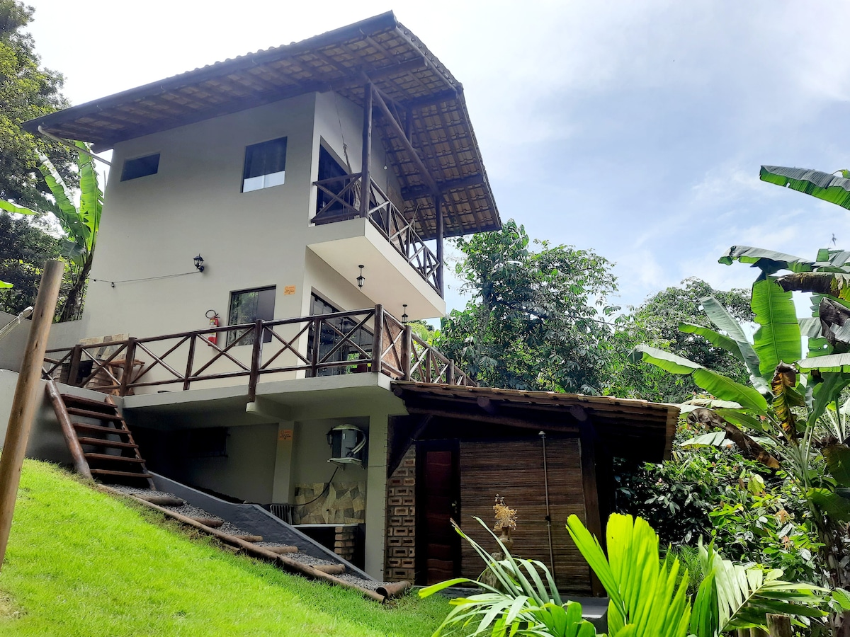 Dođite i doživite Casa Recanto das Tree sa trajno očuvanom atlantskom šumom, mirom, prostranom i elegantnom, 10 minuta automobilom od urbanih plaža i gastronomskog centra Itacaré (Rua da Pituba), koji se nalazi u kondominijumu Recanto das Tree, kuća ima 3 spavaće sobe kao apartman, 2 sa klima-uređajem i 1. Obezbjeđujemo ventilator, kompletnu kuhinju sa mašinom za pranje sudova i balkon sa pogledom na šumu. Prihvatamo kućne ljubimce.