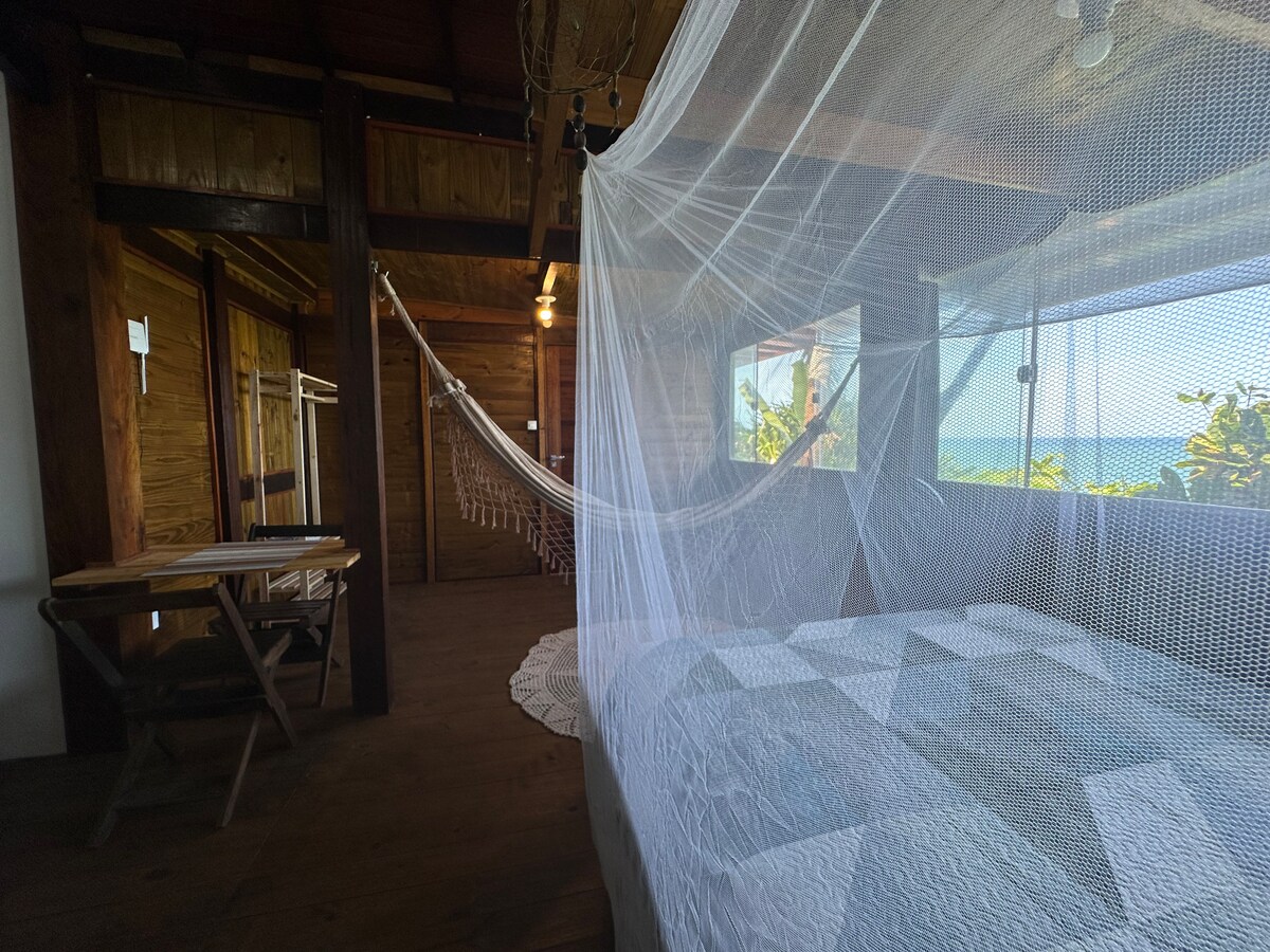 Planinska kuća na plaži Tiririca za one koji vole prirodu i more🌊. Nalazi se na zelenoj površini 5 m od plaže Tiririca Planinska kuća nudi posteljinu, peškire, frižider, šporet, klima-uređaj, blender, Wi-Fi, bračni krevet, krevet za jednu osobu i spoljni tuš kako biste se rashladili 🕊️ Balkon sa visećom ležaljkom i prelijepim pogledom na more, na plaži Tiririca, mjestu za surfovanje, u Itacaréu🏖, prostor za opuštanje 🕊 Dođite i divite se i uživajte u ljepoti plaža i njihovoj prirodi 🌳🌴