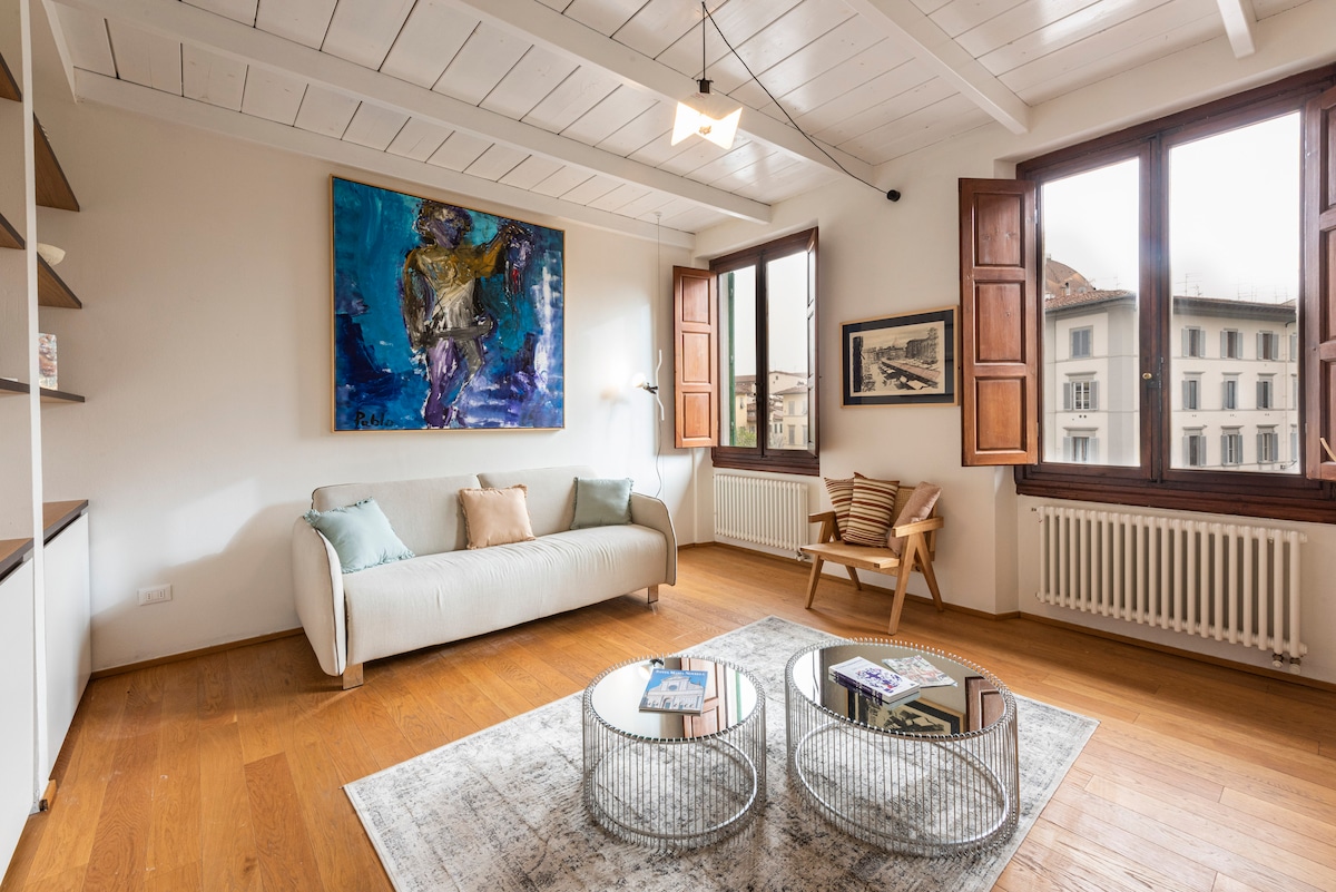 Dobro došli u rodno mjesto Benvenuto Cellinija. Jedan od najistaknutijih umjetnika 16. vijeka. Sa zlatom i srebrom, oblikovao je snove. Slike koje krase stan ispričaće priče o njegovim bezvremenskim remek-djelima i njegovom odvažnom, spornom duhu. Sa prozora dnevne sobe možete da se divite čuvenim spomenicima katedrale i Firence ili da vas inspiracija preplavi sa vaše privatne terase. Odavde će se Firenca sigurno ugurati u vaše srce zauvijek.