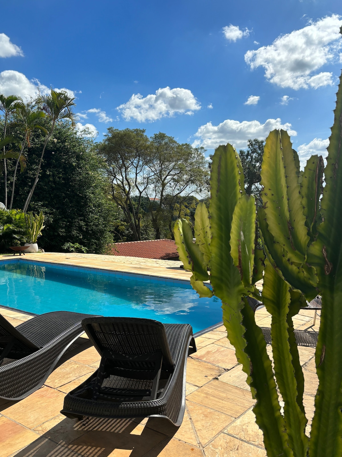 TEMOS WI-FI VIVO FIBRA 300MEGA.😀 ESPAÇO DE USO EXCLUSIVO DOS HÓSPEDES; CASA, PISCINA E JARDIM. A propriedade de 3.000 totalmente cercada por muro, possui duas casas, em lotes separados por cerca viva . Desde de novembro 2023, apenas a Casa 1 principal (sede) está disponível para locação e a Casa pequena não é alugada, mantendo com acervo pessoal do proprietário. A chácara é bem arborizada, com flores e pássaros p todos os lados. Seja muito feliz e bem vindo aqui!