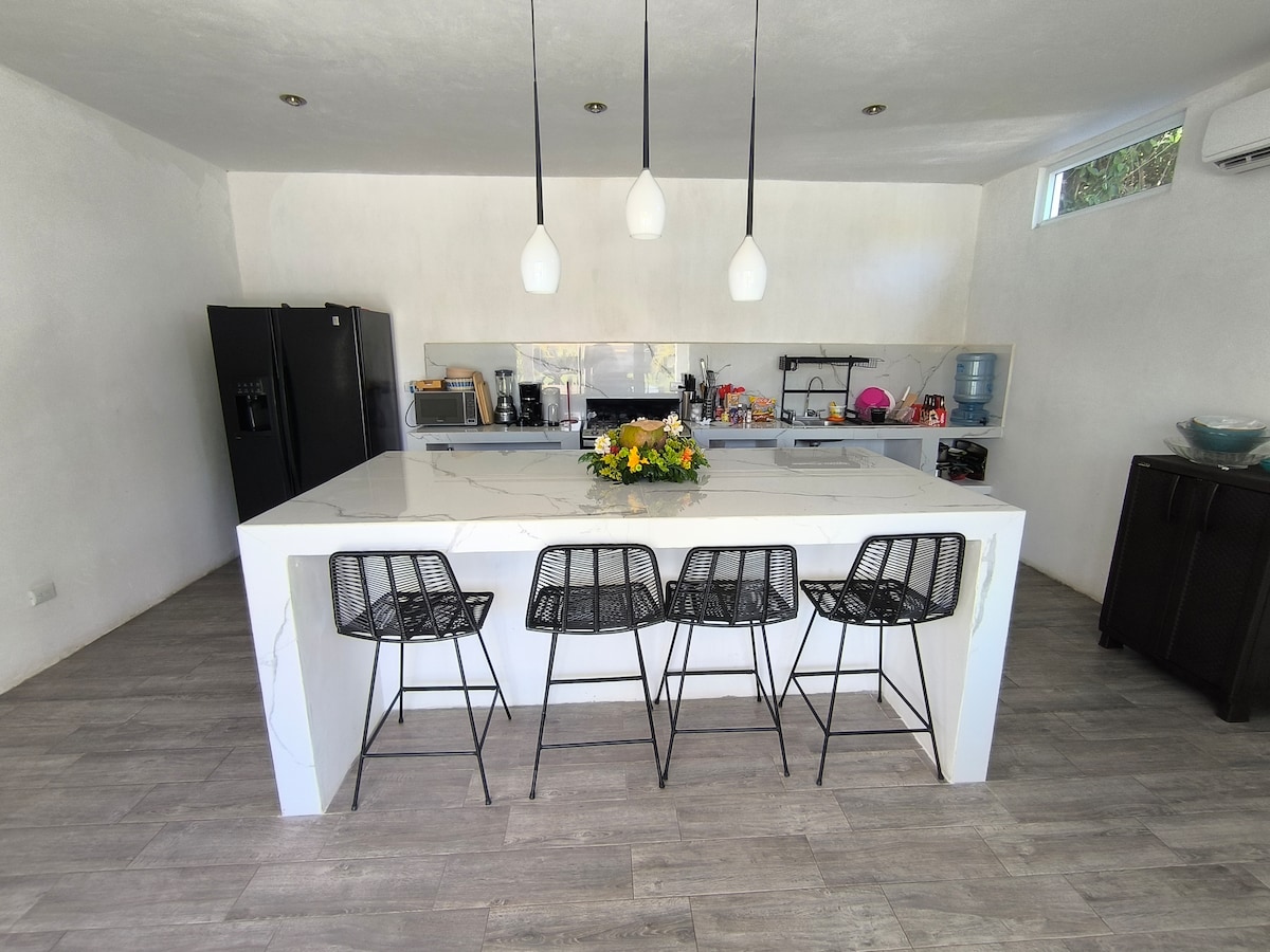 Una moderna casa, a tan solo 4 minutos caminando del mar. Ideal para familias y grupos que buscan comodidad, privacidad y un ambiente relajante cerca de la playa. La propiedad cuenta con 2 niveles. Parqueo privado para 2 vehiculos, 3 habitaciones y 3 baños completos, sala, comedor, cocina totalmente equipada perfectos para alojar a varios huéspedes. Relájate en la piscina privada con fuente, perfecta para disfrutar durante el día o en una noche tranquila. Ideal para estancias cortas o largas.