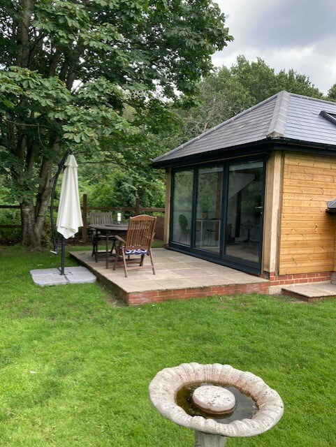 Prekrasna odvojena staja izrađena od francuskog hrasta u mirnoj privatnoj stazi na ograđenom seoskom imanju. Luksuzno opremljen sa svim sadržajima za kratku pauzu ili duži boravak. Klima-uređaj. Besplatno punjenje električnih vozila. U blizini se nalazi mnogo javnih pešačkih staza. Lokalne prodavnice su udaljene samo 10 minuta hoda. Gastro pabovi, restorani i nezavisne prodavnice do kojih se može doći pješice. Kratka vožnja od M25 (J11). Brze željezničke veze sa Londonom iz Vokinga. LGBTQ+ friendly. Friendly Spaniel and Siamese cat on site.