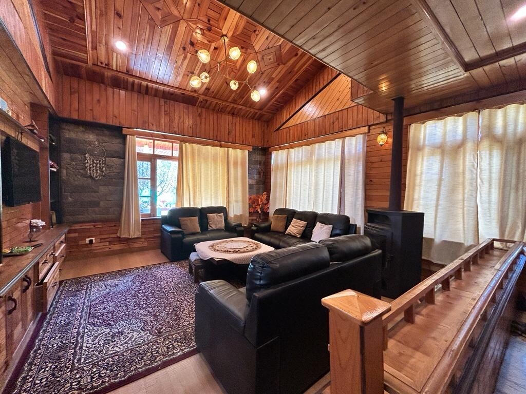 U ChaletShanagManaliju doživite nefiltriranu vezu sa prirodom dok vas predivne planine prekrivene snegom i zeleni pogledi obuhvataju, u svoj svojoj čistoći. Opuštajući rustikalni drveni šarm, u kombinaciji sa zemljanim paletama boja i predivnim mestima za ručavanje na otvorenom, ova raskošna veličanstvena vila ima četiri spavaće sobe. Posmatrajte pahuljice kako se spuštaju na zemlju dok se prepustite sauni ili se priljubite uz kamin sa svojim voljenima da podelite smeh i priče.