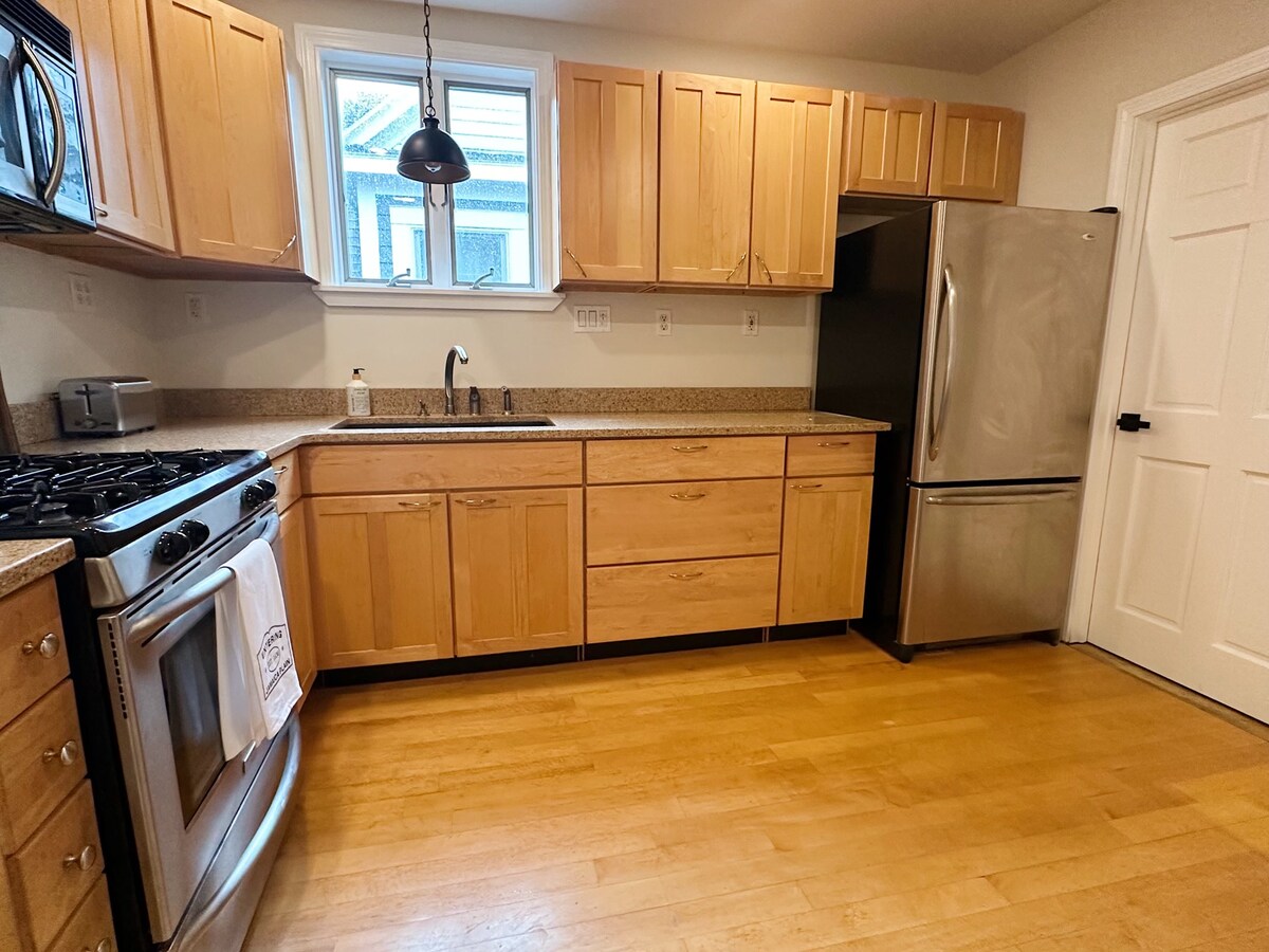 This is a 1st floor private unit nestled in a serene urban enclave. Conveniently surrounded by public transit, shops, and dining options within a 0.6-mile radius. Originally a charming Victorian abode, meticulously renovated in 2016 to seamlessly blend historic elegance with contemporary comforts. Revel in a fully-equipped kitchen, private rear porch, and a tranquil bedroom boasting a plush queen-size bed. Tailored for your short or extended stay needs, with central air for optimal comfort.