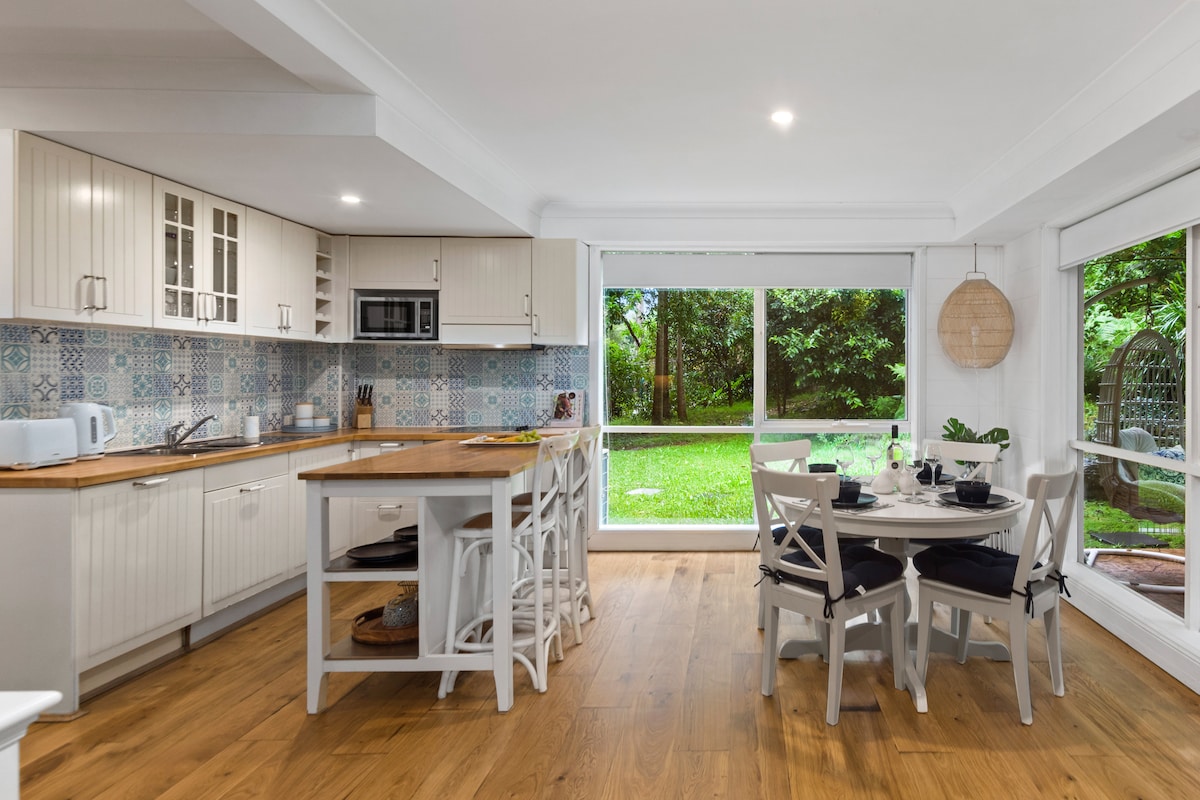 Osjetite trenutno opuštanje dok uživate u spektakularnom pogledu na obalu iz ovog elegantnog stambenog prostora, samo 90 minuta južno od Sidneja i 700 metara hoda do plaže Seven Mile. Otvorite dvokrilce kako biste osjetili okeanski povjetarac i proširite prostor do prostrane terase. Ili se udobno smjestite pored kamina u hladnijim mjesecima. Sa doručkom i prostorom za opuštanje na otvorenom, bićete razmaženi mestima za okupljanje. Vaš pootch može da divlja u travnatom, potpuno ograđenom dvorištu i uživa u boravku na plažama pogodnim za pse u regionu.