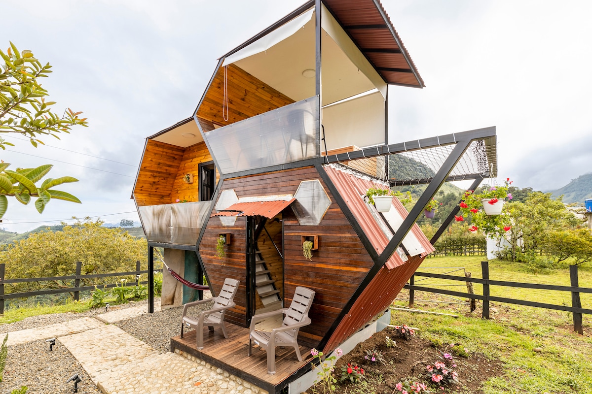 Dvospratna brvnara s pogledom na nebo. Privatno kupatilo i smještaj za 5 osoba. Nalazi se na seoskom imanju u Jardínu, Antioquia (15 minuta automobilom od grada). Nudimo dvojezičnu uslugu i doručak. Obližnje aktivnosti uključuju obilaske kafe/meda, posmatranje ptica, jahanje konja, vodopad Chorro Blanco i pećinu Cueva del Esplendor. Idealno za porodice, parove i honorarne saradnike. Nudimo Starlink internet sa brzinom do 220 MB. Nacionalni registar turizma Br. 221026