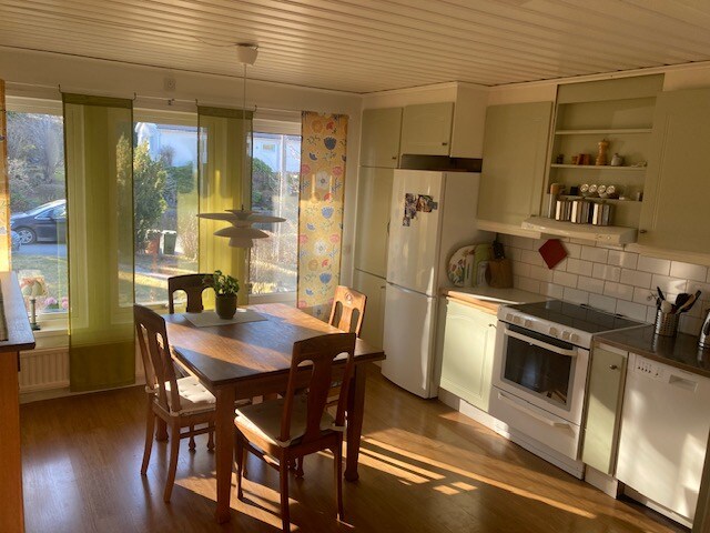 Šarmantna i novouređena kuća sa velikom baštom 12 minuta do centra Stokholma putničkim vozom. Prostori za sedenje na otvorenom sa roštiljem na velikoj terasi i ispod spektakularnog drveta. 4 spavaće sobe, dve sa bračnim krevetom. Dnevni boravak, trpezarija i moderna kuhinja sa kaminom. Dva kupatila, đakuzi, sauna i teretana!