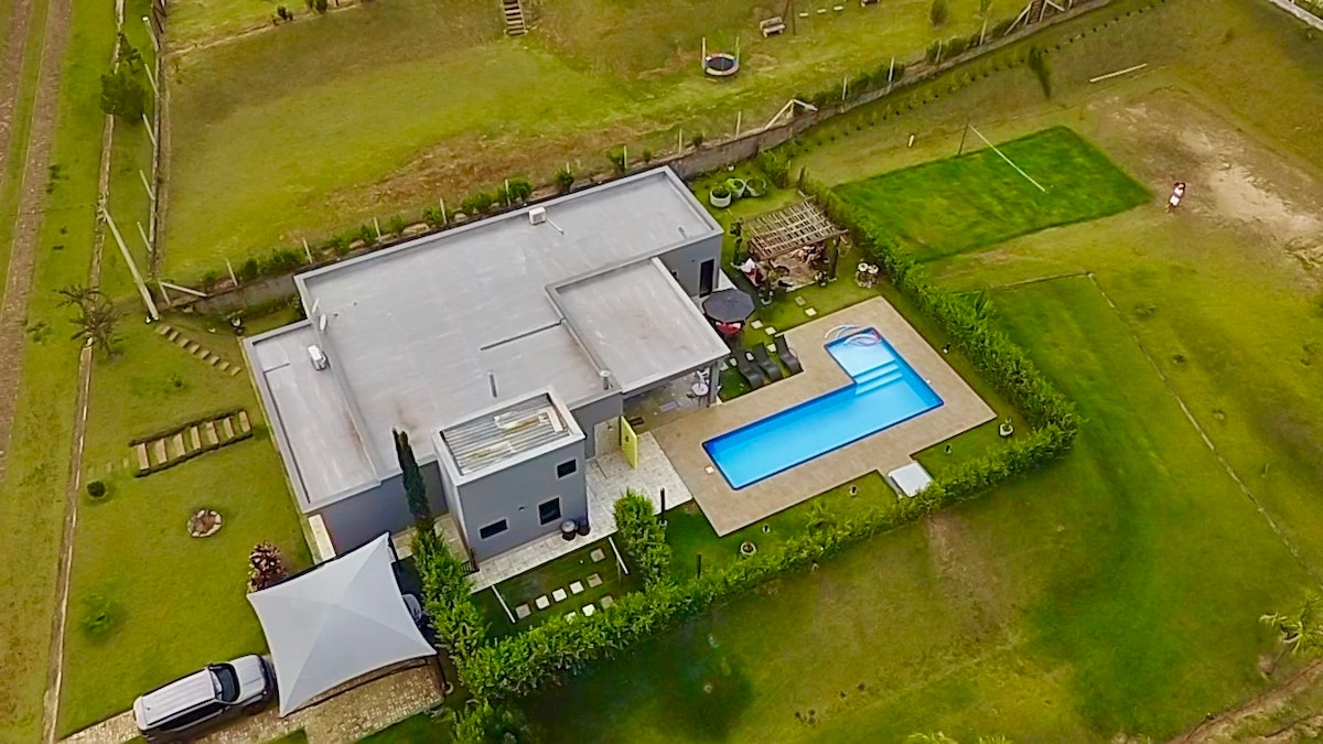 Chácara sa klimatizovanim bazenom, sa solarnim tanjirima.