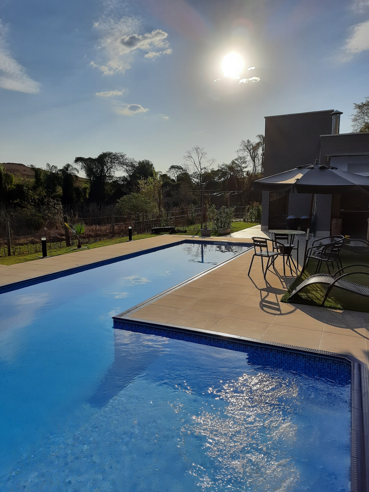 Encante-se com nossa chácara, ideal para famílias que buscam lazer, conforto e descanso. Possui piscina aquecida (26–32 °C), churrasqueira e amplo quintal murado, com portões fechados, garantindo segurança para crianças e pets brincarem e se divertirem livres. A casa dispõe de 1 suíte, 1 quarto de casal e 1 quarto com camas de solteiro, todos com ar-condicionado, além de banheiro social, cozinha integrada, lavanderia e espaço gourmet amplo ao lado da piscina. Viva momentos inesquecíveis!