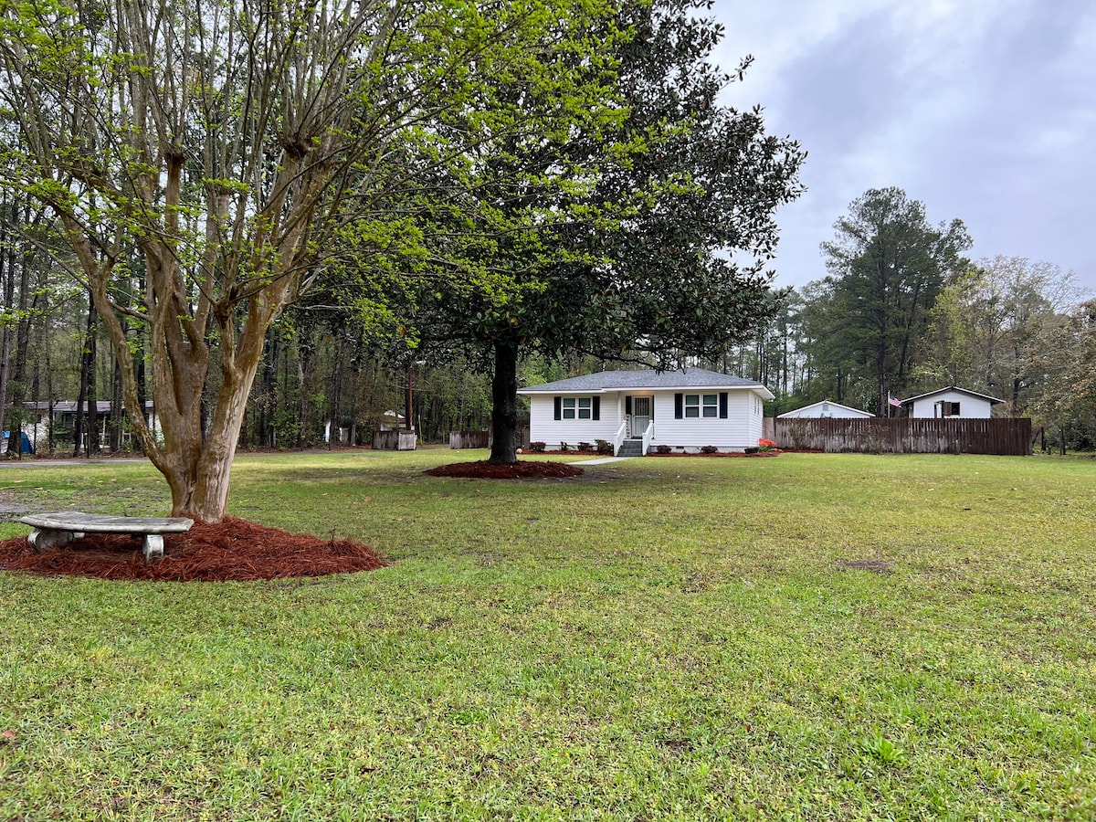 Nalazi se u centru Blufftona. Samo kratka šetnja do mnogih prodavnica, restorana i parkova u Starom gradu. Nedavno renovirana seoska kućica sa potpuno opremljenom kuhinjom, pametni TV, igre, mašina za pranje veša, mašina za sušenje veša, bračni krevet i dva kreveta na razvlačenje. Uživajte u udobnom spoljašnjem prostoru uz sjenicu, vanjski salon i hammack. Kratka vožnja do plaža Hilton Hed, Savana iBofora ili idite na jednodnevni izlet u Čarlston ili čak Džeksonvil, FL. Prikladno za kućne ljubimce.