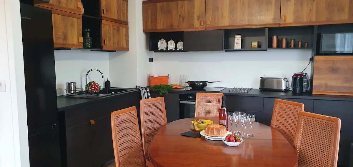 moderna kuhinja sa svom opremom za električnu rernu, frižider, frižider, mašina za pranje veša, aparat za kafu toster itd., trpezarija stara 70 godina, dnevna soba, sofa, fotelja,spavaća soba 1 sa garderobom, spavaća soba2 garderoba i komoda, kancelarijski prostor sa Wi-Fi kupatilom sa tušem , odvojenim WC-om, odvojenim WC-om, zatvorenim dvorištem baštenskog nameštaja, električnim roštiljem bez uznemirujućeg pristupa komšiluku od strane 619,2 km Niglolanda, 15 km jezera Dienville i šuma Orient 18k, 6 km svih prodavnica