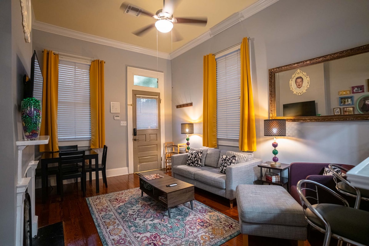 Ovaj istorijski stan nalazi se u centru grada, jedan blok od užurbane ulice Magazine Street - popularne, komercijalne trake poznate mještanima po svojim barovima, restoranima i buticima. Udaljen je jedan blok od prodavnice, apoteka i autobuske linije. To je takođe blizak put do baštenskog okruga, Tulanea, Francuske četvrti i linije za ulične automobile na aveniji Sent Čarls. Ima mašinu za pranje/sušenje veša i kuhinju sa svim osnovnim sadržajima za kuvanje. Sagrađen 1880-ih, stan je prepun istorijskog šarma Nju Orleansa.