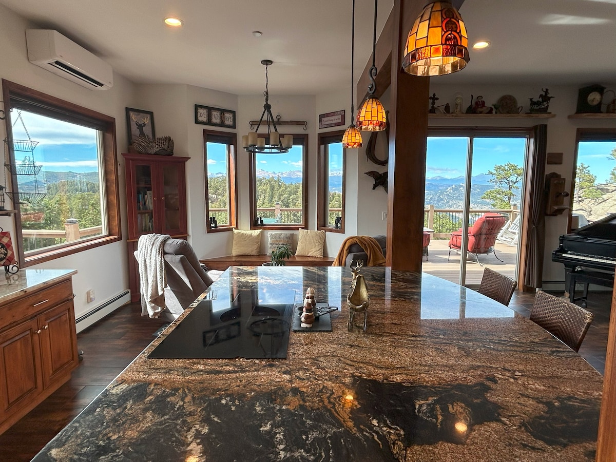 Pobjegnite u veliko privatno planinsko utočište na 9,4 hektara smješteno na vrhu planine Konifer. Ovaj nedavno renovirani smještaj nudi zadivljujući nesmetan pogled. Uživajte u luksuznim sadržajima, uključujući hidromasažnu kadu, saunu u obliku bureta, privatni prostor za bacanje sekira, unutrašnje i spoljašnje kamine, bioskopsku sobu sa ogromnim 85-inčnim plazma televizorom, arkadnu sobu i Peloton+ bicikl. Savršeno za porodice i grupe koje traže jedinstveno vrhunsko utočište u Koloradu sa brzim pristupom Red Roksima, Evergrinu, Denveru i lokacijama za venčanja.