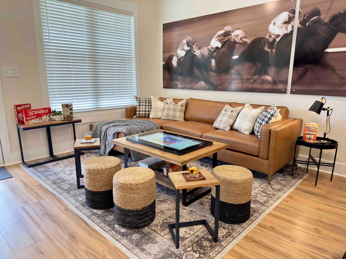 Dobro došli u Luivil Luxury, vaš drugi dom! Cela grupa će imati lak pristup svemu iz ovog doma koji se nalazi u centru grada. Od stola od burbona do sobe za šišmiše Slugger, ovaj smještaj prikazuje sve što Luivil ima da ponudi. U cijelom smještaju, podsjetićemo vas da ste u svjetskoj prestonici konja i burbona. Imamo sve što vam je potrebno da biste imali udoban i čist smještaj, ali ćemo vas takođe natjerati da kažete: „VAU!” kada vidite uređenje i sadržaje koje imamo.