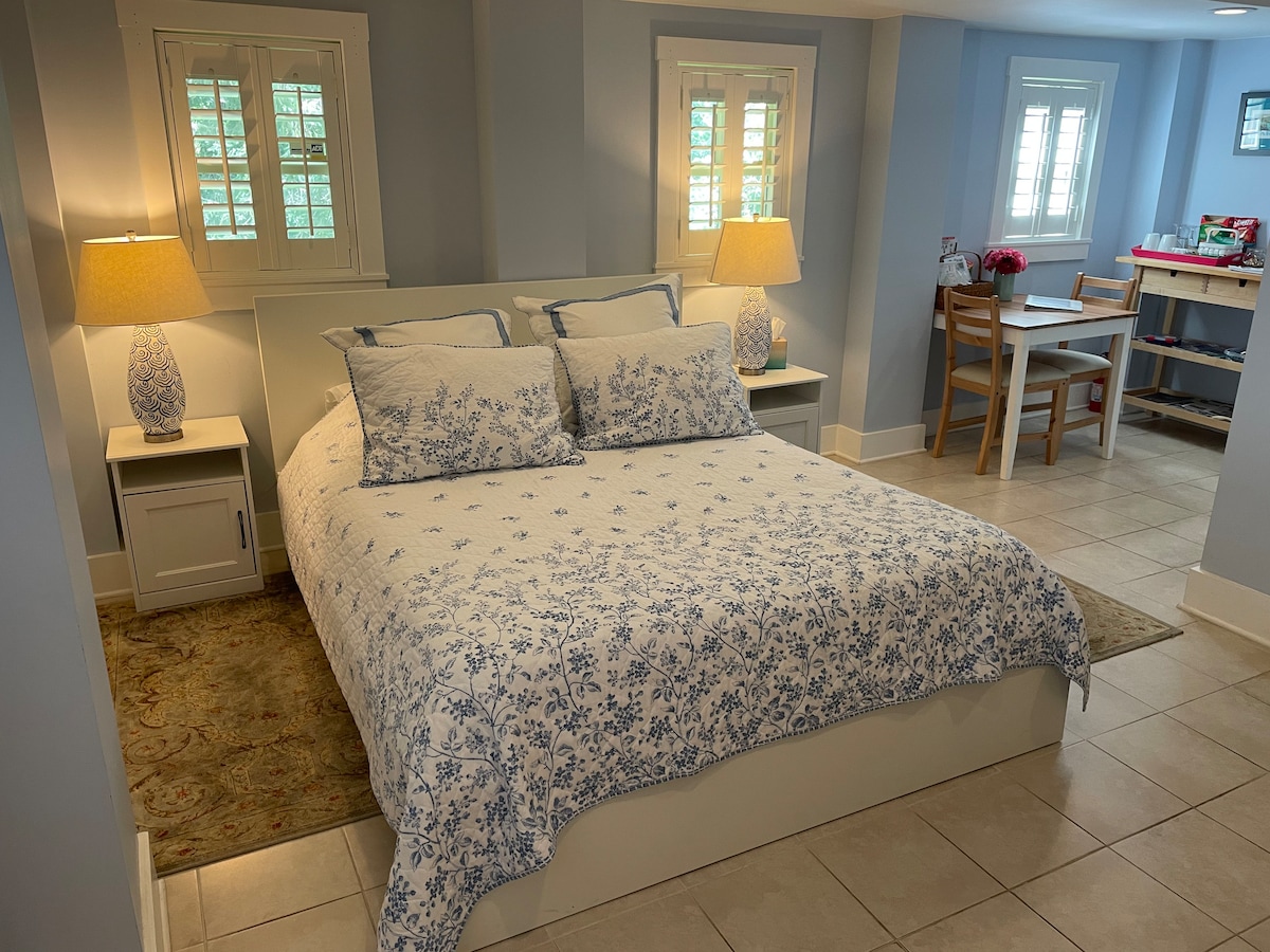 Vaš apartman obasjan suncem čeka u mom mirnom bungalovu! Samostalna prijava sa bravom sa digitalnom bravom kroz vaš poseban prilaz i ulaz. Besplatan parking ispred. Privatni trem sa sedištima i stolom sa pogledom na baštu. Prošetajte do centra grada za pet minuta do svega što Shepherdstown nudi - Univerzitet Shepherd, restorani, šoping, pabovi i pozorište. U blizini - C&O Canal Towpath, rijeka Potomac, Harper 's Ferry i Antietam National Battlefields. Bajkeri, planinari i kajakaši su posebno dobrodošli!