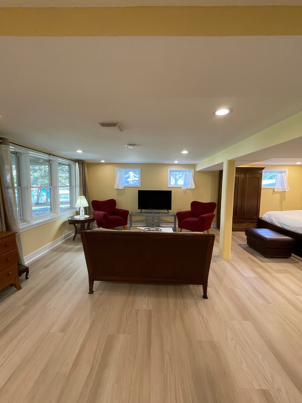 Uživajte u prostranom svodnom plafonu, udobnoj privatnoj biblioteci i šarmantnoj trpezariji. Čajna kuhinja uključuje frižider, aparat za kafu Keurig, toster, tanjire, šolje i pribor za jelo - sve što vam je potrebno za opuštajući boravak. Opustite se u luksuznom kupatilu i osvježite uz besplatnu flaširanu vodu. Imaćete pun pristup bungalovu u dvorištu, zajedno sa sopstvenim privatnim ulazom. Jednostavno pratite označenu kapiju na prilazu radi lakšeg i bezbjednog ulaska.