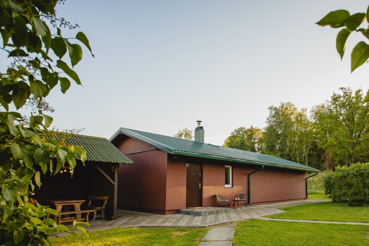 Naša renovirana drvena kuća izgrađena je 1938. godine i okružena je šumom i njivama. Idilično mesto za boravak u prirodi. To je čista zemlja za bijeg od užurbanog gradskog života. Naša udobna drvena kuća udaljena je samo 12 minuta vožnje od Jelgave i 55 minuta vožnje od Rige. Kuća je pogodna za romantični odmor ili porodicu sa decom. Možete da uživate u romantičnoj večeri i mirnom jutarnjem izlasku na osunčanoj terasi oko kuće.