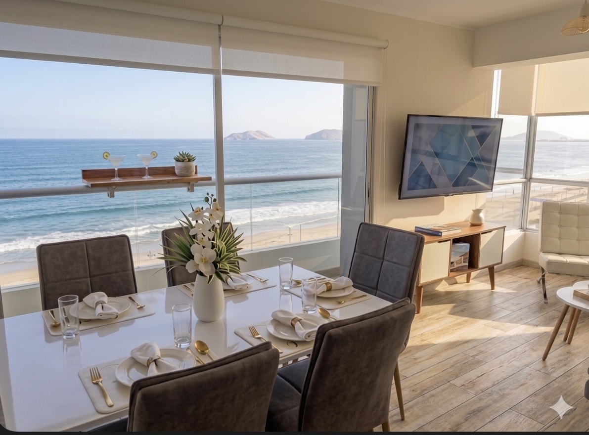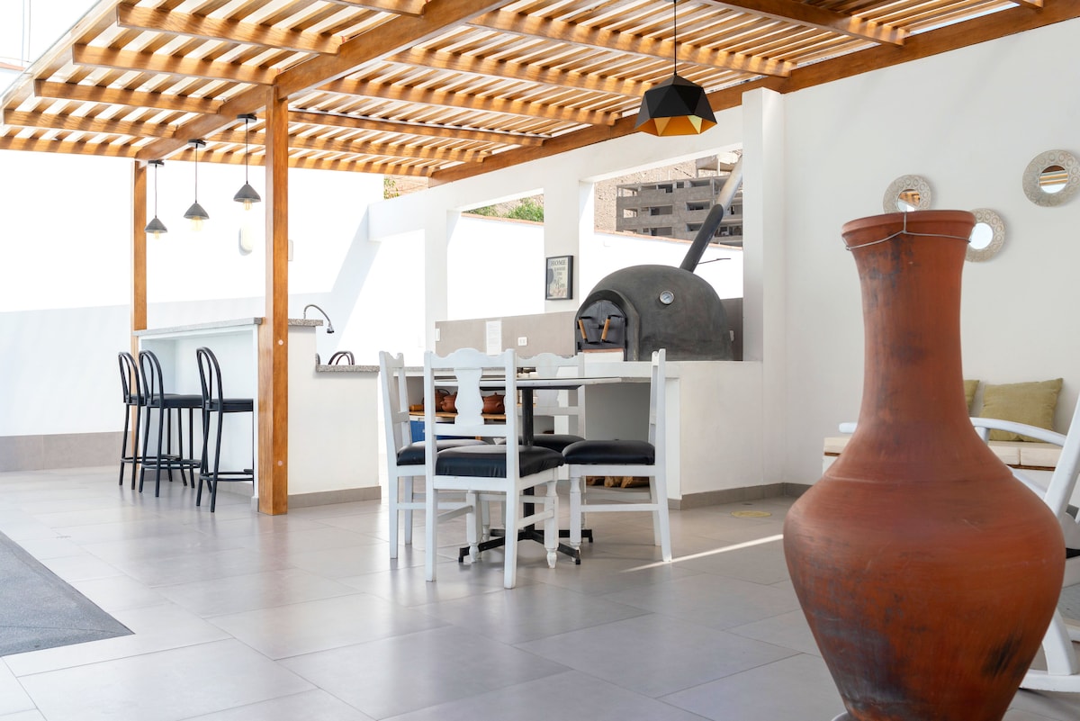 Zaljubili smo se u ovaj stan na vrhu litice Miraflores nakon što smo boravili u mnogim Airbnb smeštajima širom Lime. 200 m² na 14. spratu sa punim pogledom na obalu: gledajte surfere i paraglajdere pored parka Parque del Amor i uživajte u zalascima sunca nad Pacifikom. 3 spavaće sobe (bračni krevet + bračni krevet + 2 kreveta za jednu osobu), 3,5 kupatila sa đakuzijem, potpuno opremljena kuhinja + mašina za sudove, vešernica, brz Wi-Fi. Bezbjedna zgrada sa portirom 24/7, 2 lifta, jednostavna prijava. Prošetajte do Larkomara, parkova Malekona, plaže, kafića i vrhunskih restorana.
