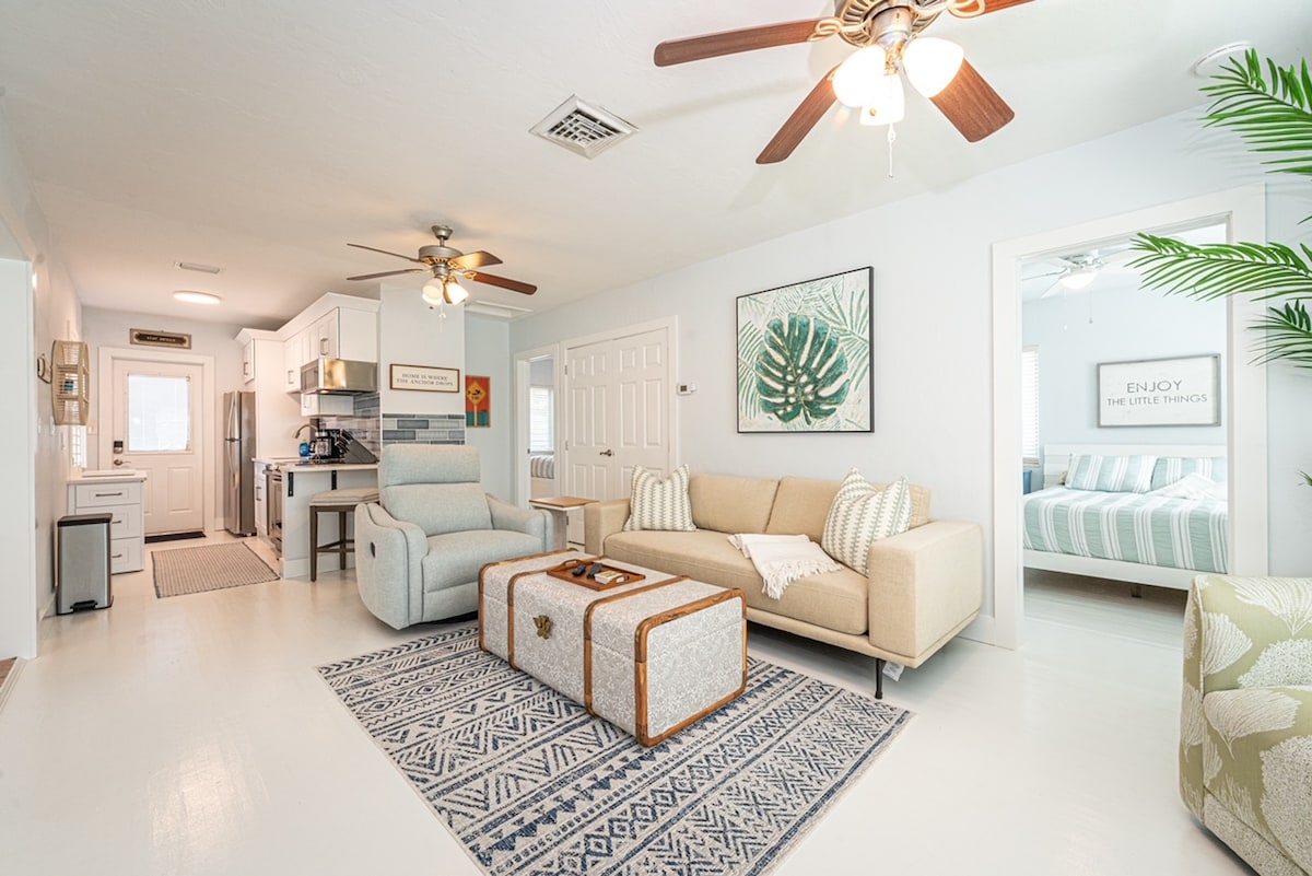 Opustite se sa cijelom porodicom u ovom mirnom smještaju. Pobjegnite na Mango Tree pored mora, nedavno renovirani tropski bungalov na ostrvu H French na Floridi, koji nudi najopušteniji i najopušteniji odmor. Prigrlite tipičnu atmosferu FL-a u ovom bungalovu, samo nekoliko koraka od plaže na osami. Okružen bujnim zelenilom, ovaj mirni dom je nekoliko minuta udaljen od vaših prstiju koji udaraju u pijesak (tačno 3 minute hoda, da, odredili smo vrijeme)! Dozvola za kratkoročno iznajmljivanje smještaja u Fort Pirsu br. VR22-000049