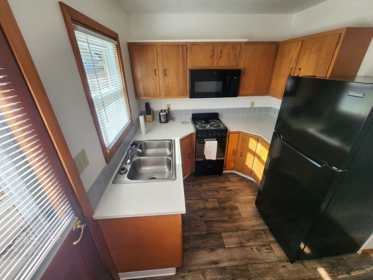 Dobro došli u našu udobnu minijaturnu kuću, ažuriranu 2022. godine, u srcu Džuel u Kanzasu. Savršen za miran odmor, ima udoban bračni krevet, dobro opremljeno kupatilo i čajnu kuhinju sa mikrotalasnom rernom, mini frižiderom i aparatom za kafu. Uživajte u udobnom dnevnom boravku s TV-om ravnog ekrana, brzom Wi-Fi mrežom, grijanjem i klima-uređajem. Opustite se u prostoru za sedenje na otvorenom. - Zabranjeno pušenje - Idealno za parove ili putnike koji putuju sami Rezervišite smještaj danas i uživajte u predivnom odmoru!