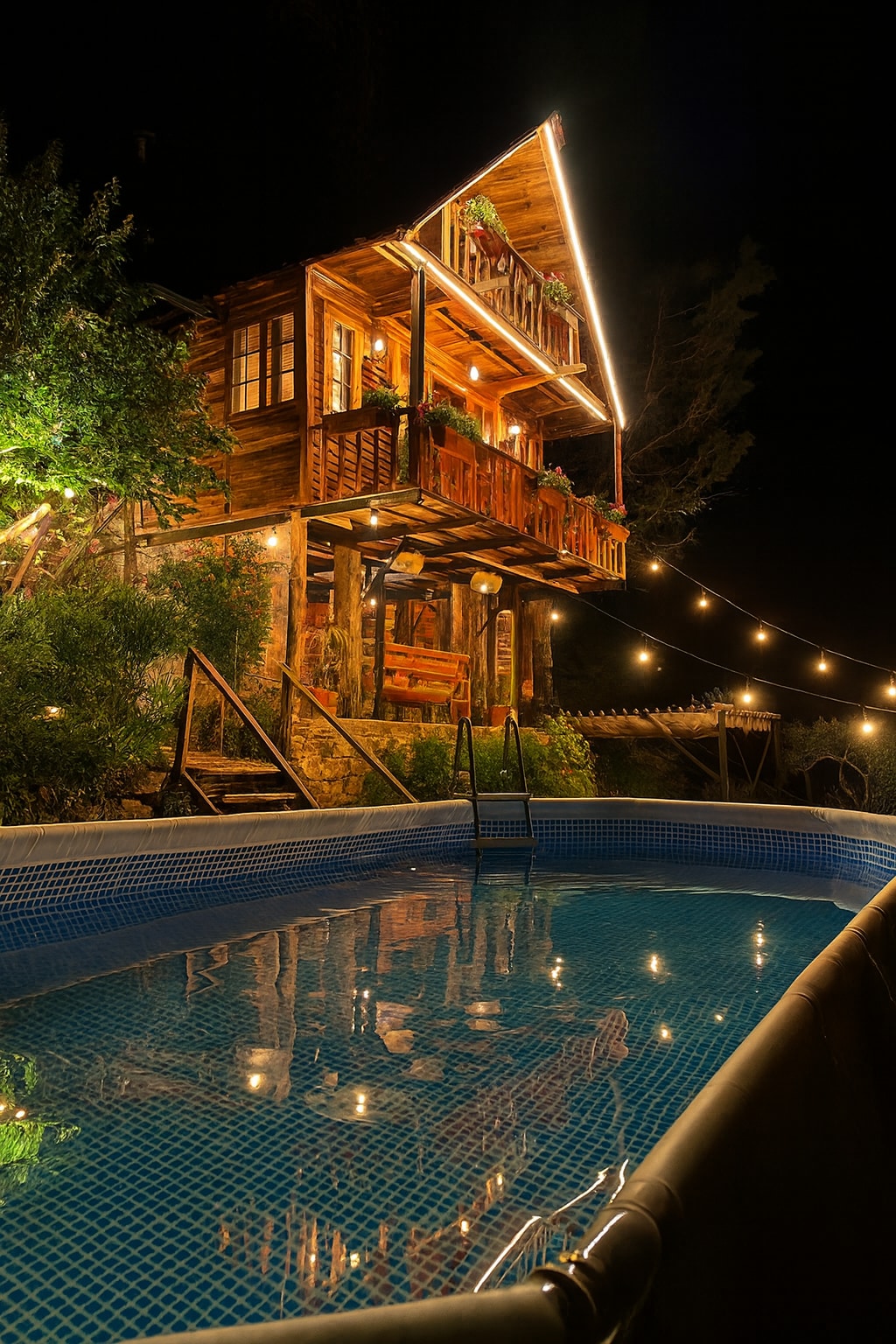 Udobna, privatna kuća na drvetu s panoramskim pogledom, grijanom hidromasažnom kadom na otvorenom i pametnim projektorom s Netflix-om. Uključuje bračni krevet (160x200), kupatilo, čajnu kuhinju, roštilj, ognjište, viseću ležaljku, društvene igre i Wi-Fi. Jedna od tri jedinstvene kuće na drvetu na istom zemljištu — savršena za parove ili prijatelje koji rezervišu zajedno. Dostupni su doručak, tanjiri za vino/sir i usluga dostave. Miran odmor u prirodi, samo 40 minuta od Bejruta.