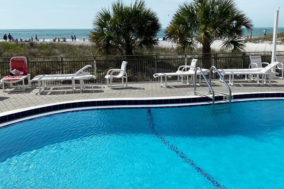 This Gorgeous 1st floor, Direct Gulf-Front condo is located on the South end of beautiful Madeira Beach, directly across the street from World Famous John's Pass Village & Boardwalk. Enjoy this 1/1 + premium queen pull-out sleeper sofa with full-sized kitchen, private heated Pool, Outdoor Grills w/ Tiki Huts on one of the Top 10 Beaches in the US. Best Attractions: Dining, Shopping, Boating, Fishing, Dolphin tours, Jet skiing, Paragliding - ALL w/in Walking Distance! Free covered parking GND FL