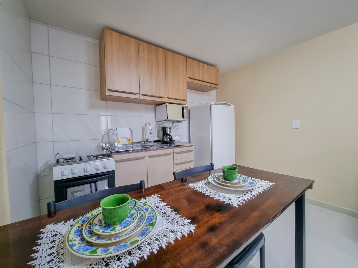 Udoban stan sa 2 dvokrevetne spavaće sobe, kompletnom kuhinjom sa priborom, mašinom za pranje i sušenje veša, klima-uređajem u dnevnom boravku i glavnom spavaćom sobom. Balkon sa roštiljem na ugalj, Smart TV-om i kupatilom sa fen za kosu i opuštajućim tušem. Zgrada ima bazen, viseću ležaljku, mjesto za kućne ljubimce, igralište i mini pijacu kako bi vam bilo lakše. Odlična lokacija, u blizini centra, tržni centri, barovi, restorani i sa jednostavnim pristupom Expovilleu i autoputu BR-101. Idealno za vaš boravak!