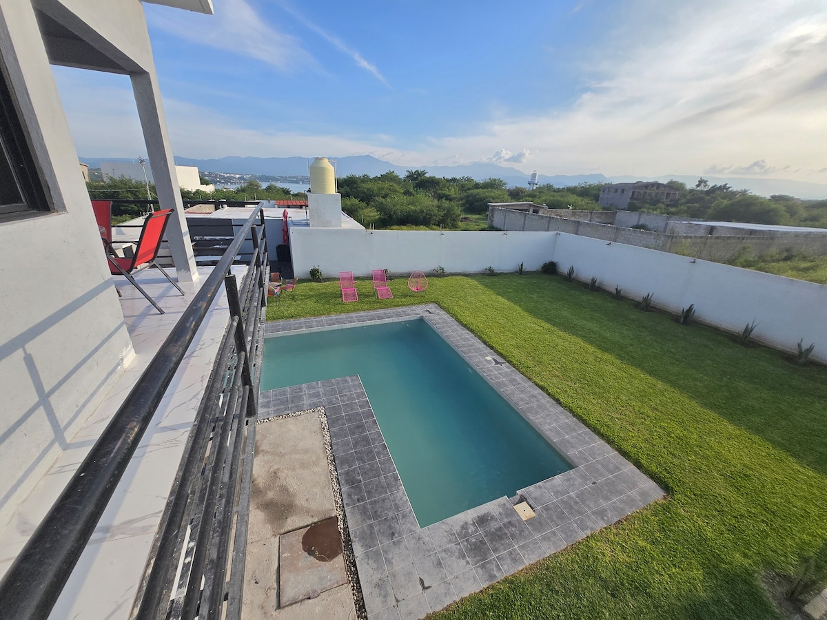 Svideće vam se naša kuća, možete da uživate u nekim danima opuštanja i zabave sa voljenom osobom, porodicom ili grupom prijatelja. Privatni bazen i parking. Udaljen 15 minuta od vodenog parka El Rollo, Tekskitengo i 25 minuta do Jardines de México. Boravite u kući i uživajte pored bazena i posmatrajte boje zalaska i izlaska sunca. Otkrijte zvukove različitih ptica Morelosa dok se budite u ovoj prelepoj državi Meksiku