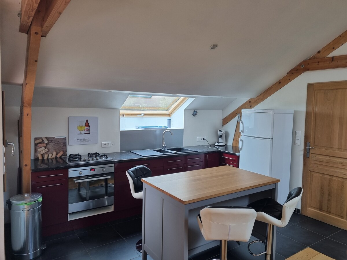 Tražite li romantični odmor ili smještaj u čahuri s prijateljima i porodicom? Dobro došli u Kuću ljubavi, atipičan i individualni dom smešten u mirnom selu Maroilles. Privatna hidromasažna kada za 2 osobe (kada za balineoterapiju) za opuštanje u kupatilu sami ili u ljubavi. Viseća unutrašnja mreža sa TV-om za atmosferu u čahuri. Privatni ulaz i besplatan parking ispred kuće. Dobra energija, povjerenje i poštovanje su naše vrijednosti.