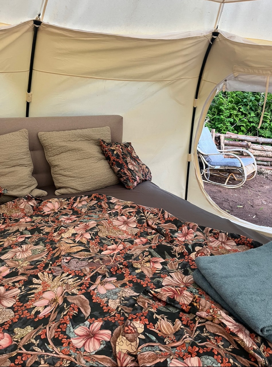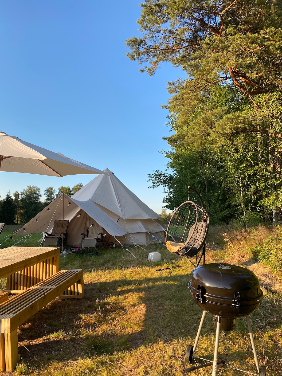 Njut av den härliga miljön på detta romantiska boende i naturen. Du får montera upp tältet själv Det är ett stort tält med gott om plats Om du inte har någonting att sova i som sovsäck och så vidare så kan jag fixa det åt dig åt er Du har tillgång även till dusch toalett och annat i mitt hus Det finns underbara sjöar och sandstränder i närheten Gillar du att bo provisoriskt och enkelt och ha en skön naturupplevelse så är detta grejen Jag kan visa runt om jag är på plats