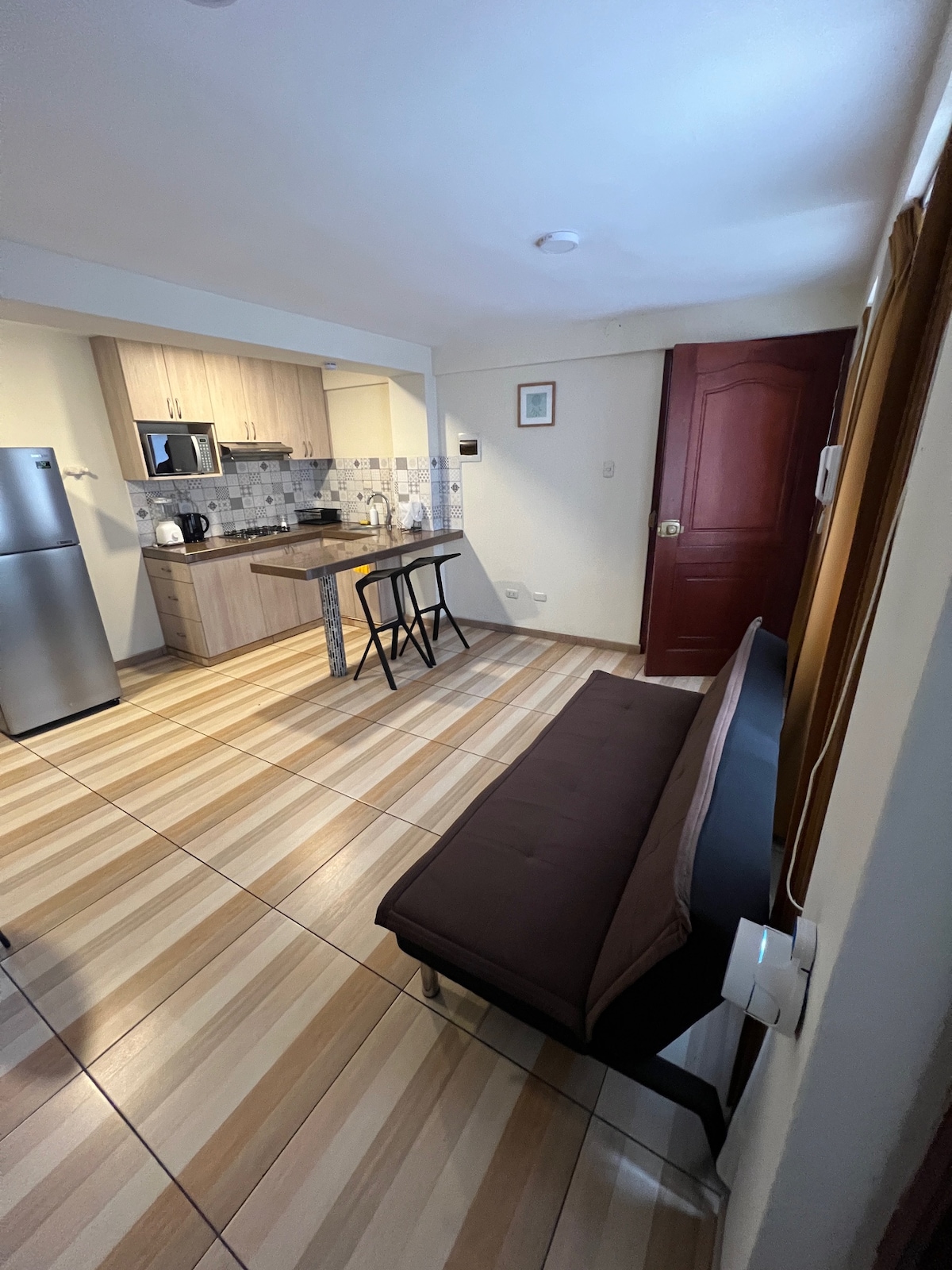 Udoban moderan stan u srcu Arekipe, savršen za parove, putnike koji putuju sami ili poslovne goste. Uživajte u svijetlom dnevnom boravku, potpuno opremljenoj kuhinji, udobnoj spavaćoj sobi, čistom kupatilu i brzom Wi-Fi mreži. Smješten nekoliko minuta od ključnih atrakcija, restorana i javnog prevoza, nudi jednostavan pristup najvažnijim znamenitostima grada. Mirno i praktično utočište za nezaboravan boravak. Fleksibilna prijava i pažljiv domaćin spreman da vam pomogne.