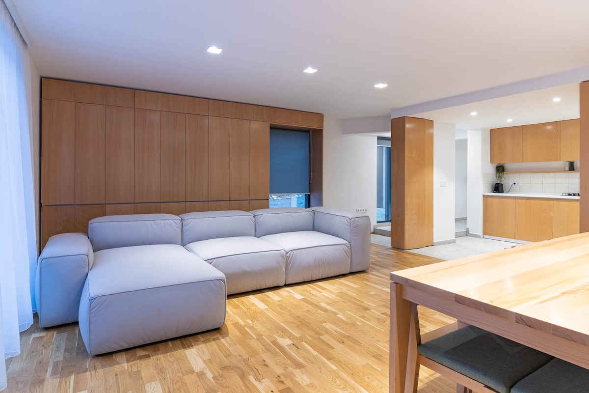 Priroda igra ključnu ulogu u uređenju ove kuće za odmor. Kuća se savršeno integriše sa praktičnom prirodom kroz jezik boja zelenih šuma , postaje reg. Arhitekta ga je u potpunosti renovirao i ponovo razmislio,a savremeni ,moderni stil čini da se osjećate kao kod kuće. To je održiva kuća sa sopstvenom autonomijom usred šume. Priroda ulazi u unutrašnjost kroz velike prozore. Mirno je,možete da se odmorite, opustite u kadi u dvorištu bez kijanja .