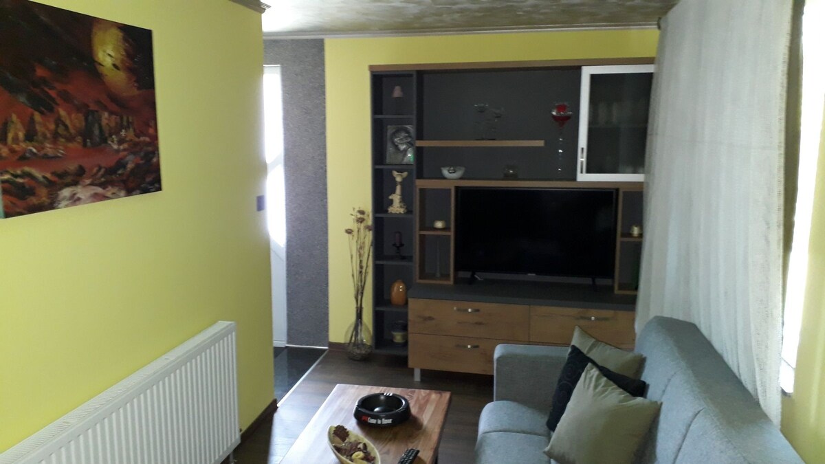 NIKO NE živi u stanu, površine 56 m2, pogodan za 1 do 5 osoba, kupatilo sa tušem, mašinom za pranje i sušenje veša, kuhinja potpuno opremljena ; dvije odvojene sobe, novi klima uređaj, u blizini centra grada; prizemlje, javni parking, autobuska stanica(udaljenost 100 m); WI FI, optički kabl, Android TV ekran 55 in i 32 inča, novi kreveti, novi frižider, nova mašina za pranje veša, nova mašina za pranje veša, Peškiri, šampon, kuvalo za vodu, centralno grijanje