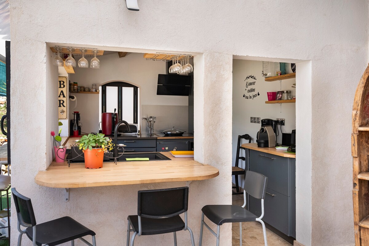 Dobro došli u naš šarmantni provansalski seoski dom! Živite kao u romanu Panjola, okruženi suncem i cvrkutom cvrčaka. Smještena među vinogradima i poljima lavande, ova kuća pruža pogled koji oduzima dah, a koji se proteže do planine Sent-Viktuar. Uživajte u čaši ružičastog vina dok gledate čarobno zlatno svjetlo zalaska sunca! Djeci će se bašta svidjeti! Nema pristupa javnom prevozu. S ljubavlju renovirana masija koja spaja šarm starog svijeta sa modernom udobnošću. Bašta se stalno razvija. Može da primi do 6 odraslih osoba + bebu.