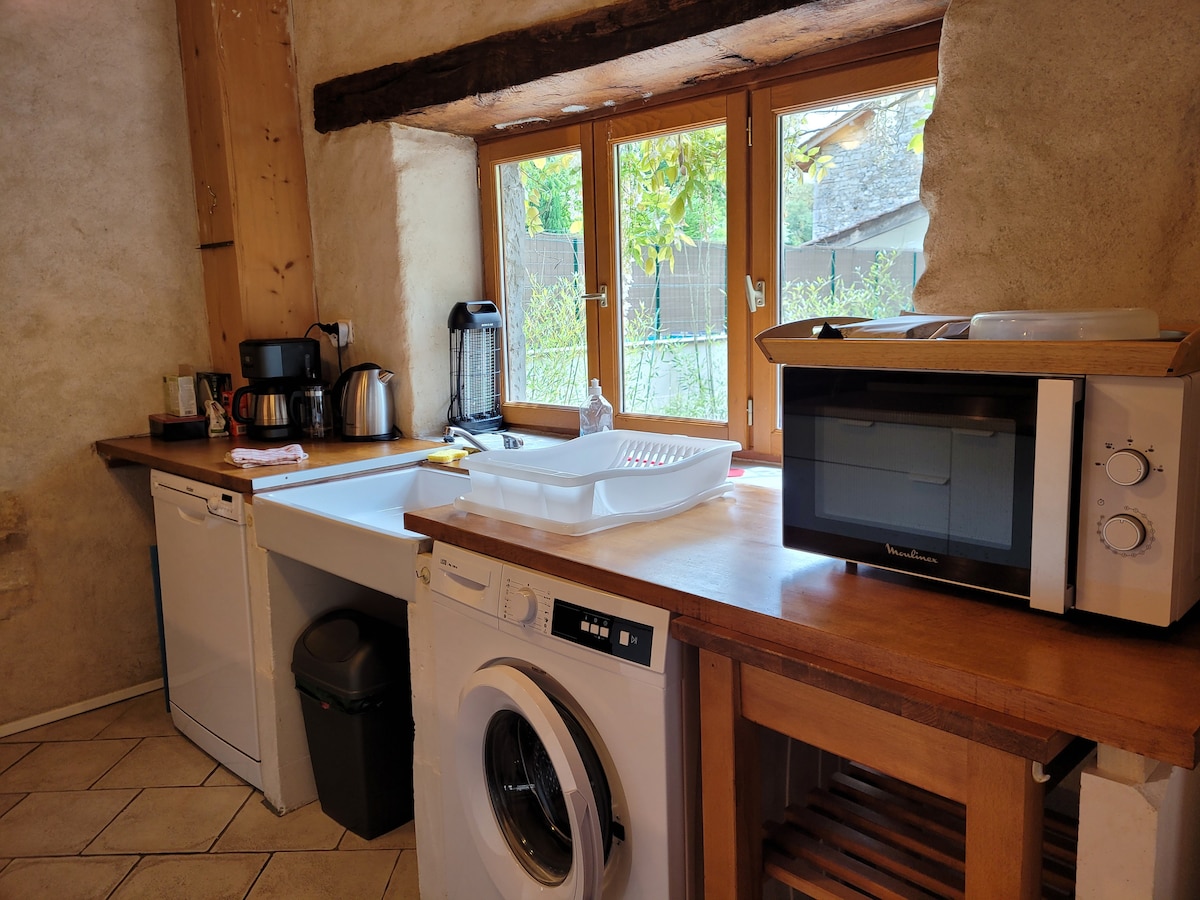 seoska kuća sa 3 zvezdice sa izvanrednim pogledom i apsolutnim mirom prostor posvećen radu (vlakna,kutija,Wi-Fi) potpuno opremljena kuhinja dnevni boravak sa kaučem na razvlačenje + pametni TV, netflix krevet u spavaćoj sobi dimenzija 160x200+garderoba +kancelarija kupatilo sa tušem + mašina za pranje veša zasebna WC šolja garaža za bicikle , prtljag itd. napolju u blizini zaštićene terase sa stolom i baštenskim nameštajem +roštiljem planinarenje , ribolov , biciklizam , brdski biciklizam , otkrivanje neobičnih mjesta
