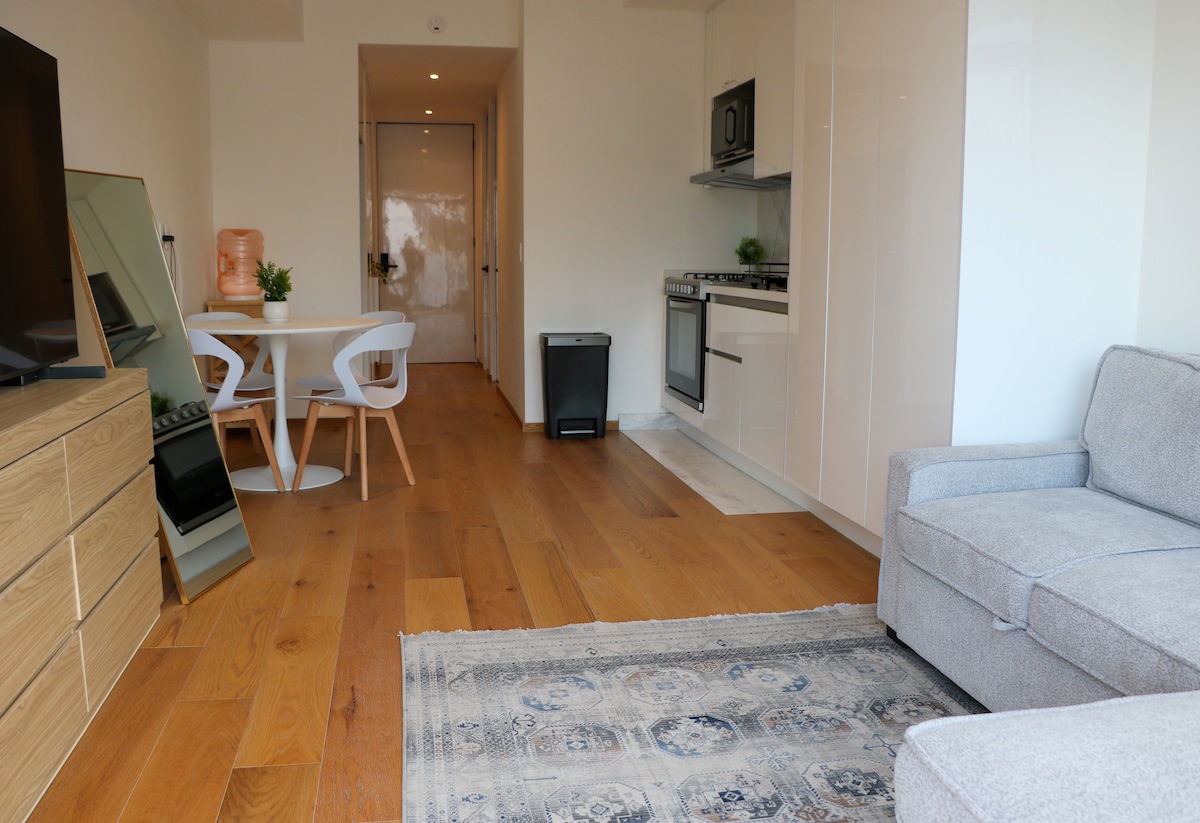 Elegancija i udobnost na Paseo de la Reforma: Moderan jednosobni stan + kauč na razvlačenje. Savremeni meksički dizajn, veliki bračni krevet, opremljena kuhinja, brz Wi-Fi i nezaboravni pogledi. VRHUNSKI sadržaji: salon na krovu sa đakuzijem, bazen, spa, teretana, čitaonica, bašta i obezbjeđenje 24/7 sa QR pristupom. Povlaštena lokacija, u blizini muzeja, restorana i poslovnih centara. Mi casa es tu casa. Želimo vam dobrodošlicu raširenih ruku – uživajte u stilu, udobnosti i miru.