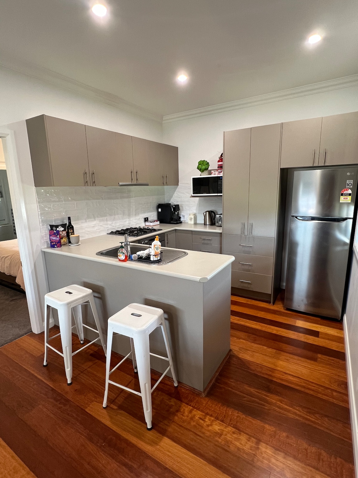 Dovedite cijelu porodicu u ovaj odličan smještaj sa mnogo prostora za zabavu. Pešačka udaljenost do Laurie Daley Oval & Loftus Oval (Footy Fields), Burns Park (Soccer Fields), Play Park, Showgrounds, & the Junee Liquorice Factory 1x bračni krevet (širine 180-179 cm) 2 bračna kreveta (širine 150–179 cm) Smart TV Ensuite Glavno kupatilo ima dva umivaonika, kadu i tuš Kvalitetna posteljina i peškiri (veliki peškiri za kupanje itd.)
