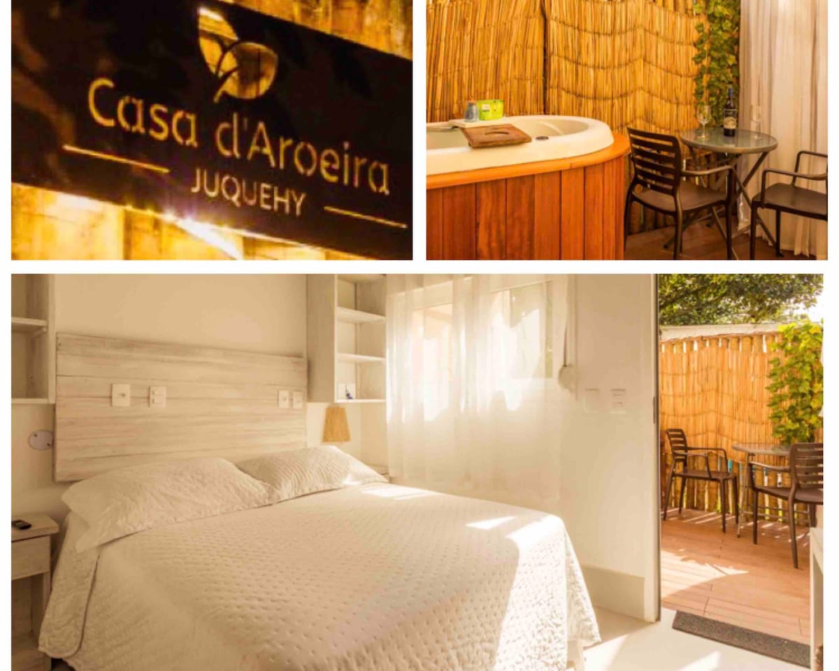 Casa d’Aroeira Condomínio Boutique casadaroeira.🍃 Flat novinho Estacionamento Ofurô/chuveirão exclusivos Serviço de praia 2 quadras da praia 55 mts2 Cozinha completa Tratamento acústico No centrinho.Perto de tudo Roupa de cama 600 fios algodão egípcio Toalhas banho algodão 1 quarto c/ cama casal padrão (1.38x1.88) no térreo e 1 quarto no mezanino c/ colchão casal padrão no tatame (tem q subir escada e o teto é baixo 1.70 cm a 1.75 cm) Tv smart Wi Fi Sala c/ sofá cama pra 2 solteiros/f