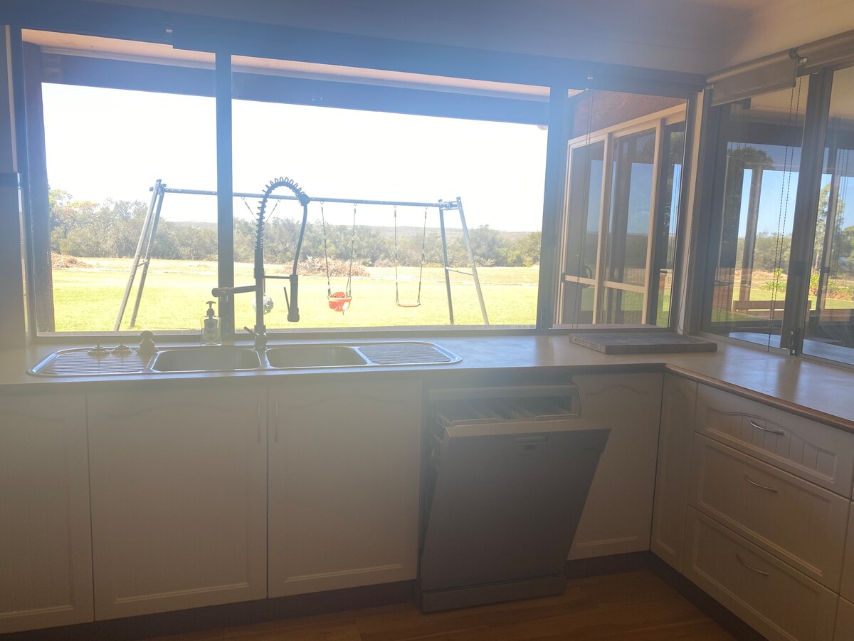 Opustite se sa cijelom porodicom u ovom mirnom smještaju. Smješten na 5 hektara, naš dom je prostrano utočište, savršeno za cijelu porodicu. To je idealno mjesto da provedete nekoliko dana opuštajući se na veličanstvenom suncu WA. Naš smještaj 4x2 ima ogromnu prostoriju za igre u zatvorenom/na otvorenom, rernu za picu na otvorenom, mašinu za video igre, vatru na drva u zatvorenom prostoru za one hladnije noći i Starlink internet.