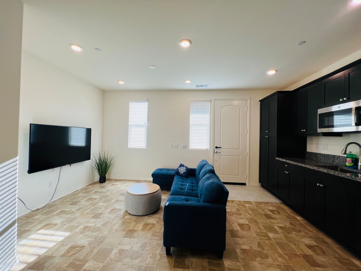Ova elegantna garsonjera nalazi se u okruženju pogodnom za porodice i nalazi se u centru do aerodroma i kongresnog centra Ontario, brojnih bolnica i tržnih centara, i oko sat vremena udaljenosti od planina, plaže i Los Anđelesa. Ovaj studio je opremljen svime što vam je potrebno! Postoji mala čajna kuhinja, uključujući Keurig, rešo, mikrotalasnu rernu i mini frižider. Postoji mala terasa u kojoj možete da uživate u prirodi ili TV-u da biste gledali svoje omiljene emisije. Sigurno ćete se opustiti ovde!