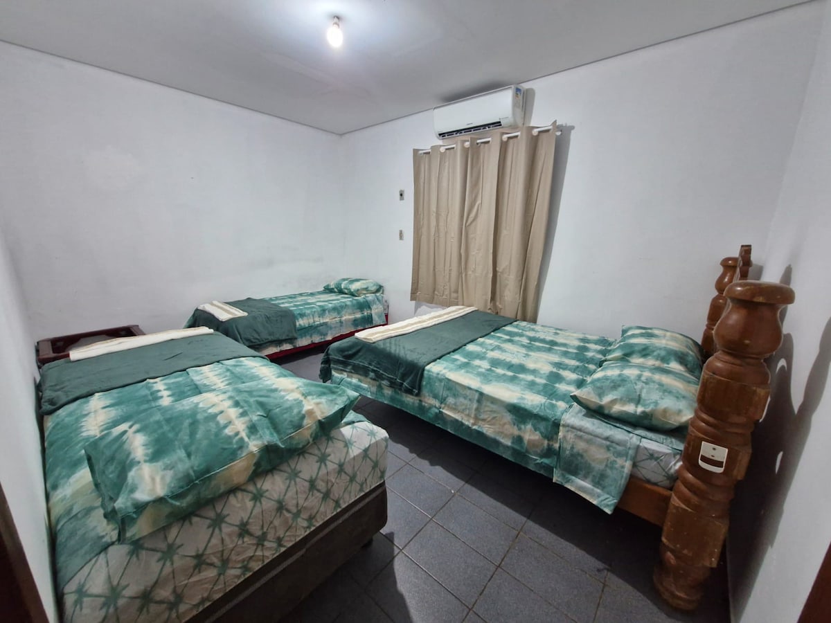 Idealno za opuštanje! Odlična lokacija! U blizini tržnog centra, restorana , supermarketa, apoteka itd. - 1 spavaća soba sa bračnim krevetom i klima-uređajem; 1 spavaća soba sa 1 duplim dušekom, 1 dušekom za jednu osobu, 1 radnim stolom i plafonskim ventilatorom; - 1 kupatilo sa električnom tuš-kabinom; - Soba sa sofom, klima-uređajem, TV-om od 42'i trpezarijskim stolom; - Kuhinja sa šporetom, frižiderom i priborom za jelo. - Wi-Fi internet i garaža za automobil 01. Prigrlite jednostavnost u ovom mirnom i dobro smještenom smještaju!